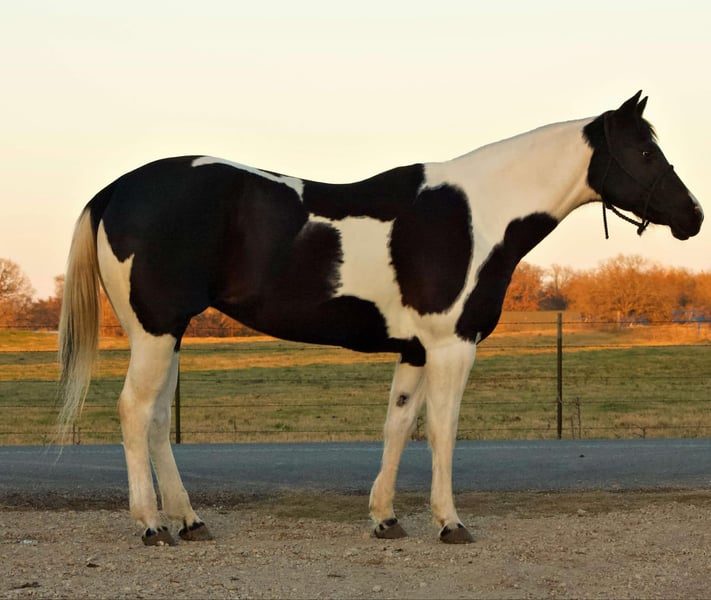 ONLINE AUCTION Place your bids at www.PlatinumEquineAuction.com Starting Bid $3500 Auction ends January 5th, 2024 Need a new saddle? Check out White Rock Saddles on our website or Facebook! MS BEDUINOS INTENTIONS is a 2015 model registered paint mare standing right at 15.2hh. She sure is a looker! Stocky built with a lot of chrome. Own daughter of the 3 Million Dollar Sire “MY INTENTION” this mare has everything she needs in her pedigree to be successful whichever direction you decide to take her. She has been a citizen of the world has done a little bit of everything: she has raining basis which gives are great foundations, nice stop, collect lope, very responsive on leg pressure, has done trail riding as well and been lightly used to sort cattle. She has a very quite mind which would make her suitable for any kind of rider with a minimum of experience, she is a smooth mover with very comfortable trot and lope, not spooky or watch by any mean she will cross water and walk in the traffic next to semi trucks. Will load and unload in any kind of trailer, stock or slant, ramp or not, she stands tied for grooming and baths, she is gentle with the farrier, she is used to be turned out with other horses and will not act mareish, easy to catch she will meet you right at the gate. Located in Terrell (TX) shipping can be arranged. consigner : DOUBLE M PERFORMANCE LLC Maria 405-331-8045. ONLINE AUCTION Place your bids at www.PlatinumEquineAuction.com Starting Bid $3500 Auction ends January 5th, 2024 Need a new saddle? Check out White Rock Saddles on our website or Facebook!
