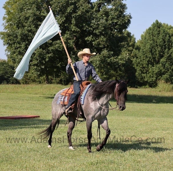 You sent Money is consigned to the Best Of The West Horse Sale in Gladstone, NJ on September 27th and 28th. Introducing Drifts Money Figure… He gets an “A” in every category but the best part of him is that he is all “B’s”… BIG, BEAUTIFUL, BRAINS and BLUE ROAN!!! Money is a stout built 15.1hh, 9 year old, True Blue Roan, Registered Quarter Horse Gelding! This fall and winter Money has been earning his living working on a feedlot. He has been loading trucks, sorting and doctoring cattle. He has been rode in big country with steep rough elevations. Money is a laid back gentle type of horse that still has all the buttons. Money content to mosey along down the trail and loves going on trail rides. He will cross creeks, ditches, logs and navigate rough rocky areas. He is safe riding in traffic. He has a smooth jog, a nice lope, a good stop, turns a circle both ways, sidepasses and backs with ease! Money has been exposed to all kinds of wildlife such as deer or turkey or other animals like cows or dogs and will go anywhere that he is asked too. He has been rode many miles in the mountains of Eastern Kentucky and encountered every obstacle possible on the trail. He will go up or down even the steepest slopes, across deep creeks, over downed trees, and over all types of rough terrain while still being sure footed. Money is a horse that can do any job that is asked of him, do it with ease and look good while doing it! Take a look at him and we believe that you will give him all A’s as well! Call Eric 606-308-2461 with any questions. Currently located in Mt. Vernon, KY. go to www.AdamsHorseAndMuleCo.com for more info.