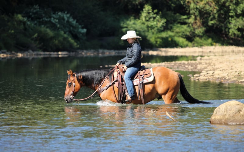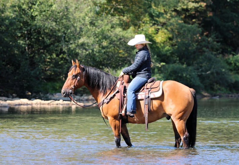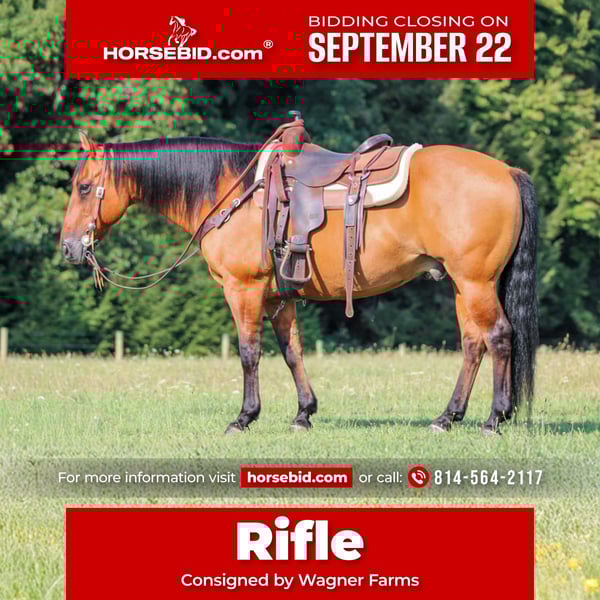 🍁𝒕𝒉𝒆 𝐅𝐀𝐋𝐋 𝑺𝒑𝒆𝒄𝒕𝒂𝒄𝒖𝒍𝒂𝒓🍁 Happening now thru MONDAY | SEPTEMBER 22nd - Available EXCLUSIVELY on HorseBid's website! For more details and to register visit: www.Horsebid.com CONSIGNOR CONTACT: Wagner Farms 814-564-2117 LOCATION: Clarion Pa BREED: QH REGISTERED: No COLOR: Buckskin Dun HEIGHT: 14.3 AGE: 11 GENDER: Gelding Rifle is a 11 Year Old Super Good Looking Buckskin Dun Quarter Horse Gelding. He stands 14.3 hands tall and has that old school Quarter Horse stocky built to him. Rifle has been my main trail mount for most of the summer. If you want a super nice trail horse you will look long and hard to find another horse as good on the trails as you will Rife. He goes anywhere you ask him to on the trail and never hesitates. Lots of trail miles under his belt making him very seasoned. Rifle has also done ranch work and is very good when it comes to working cows on him. Rifle will also ride nicely in the arena. He would make a good youth 4h or rodeo horse also. Honestly Rife can go in any direction! He is safe and easy in every way!! You will love his one hand neck rein, good deep spot and side pass. Watch his video and let him speak for himself. Never any buck or rear just saddle up and go enjoy a nice trail ride. I cant say enough good things about ride. If you want to go first class then be sure to bid with confidence on Rifle. We can help arrange delivery anywhere in the United States. Call or Text Glory at 814-564-2117 Thank you and God Bless