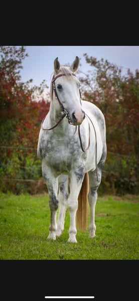 Zum Verkauf steht ein gerittener Quarter-Mix Wallach, geboren im Jahr 2014. Mit einem Stockmaß von ca. 150 cm ist er kompakt, robust und bestens geeignet für den Freizeitbereich. Er wurde in der Halle, auf dem Platz und im Gelände geritten. Er kennt Longen- und Stangenarbeit. Aktuell steht er in einem kleinen Offenstall, kennt aber Boxen, ist in der Herde Rang niedrig und läuft Barhuf. Steps ist auf einem Auge blind, was ihn nicht beeinträchtigt. Seine Vollblutgeschwister wurden auf MIM positiv getestet, weswegen ich davon ausgehe, dass er es in sich trägt. Er hatte bisher keinerlei Schübe oder Probleme, weswegen ich ihn nicht getestet habe. Mir ist es aber wichtig, dass man es im Hinterkopf hat! Außerdem wurde er Regelmäßig entwurmt. Er freut sich auf eine neue, liebevolle Familie, die seine Qualitäten zu schätzen weiß und gemeinsam mit ihm die Freizeit genießen möchte. Bei Interesse oder für weitere Informationen stehe ich gerne telefonisch zur Verfügung. 015127511439