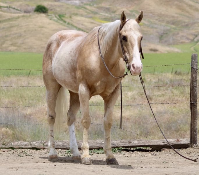 ONLINE AUCTION Place your bids at www.PlatinumEquineAuction.com Starting Bid $3500 Auction ends May 18th, 2025 Need a new saddle? Check out White Rock Saddles on our website or Facebook! Meet the beautiful Banjo, who will have your heart skipping a beat. This 11-year-old, 15-hand palomino gelding is a true trail partner who enjoys taking scenic rides while carefully crossing ditches, thick brush, and walking through rivers. He is quiet and confident, and is very surefooted. He has a nice, calm walk and is safe, trustworthy, and kind. Banjo goes out alone or in a group setting. He is the most dependable horse. Banjo is an easy-going guy that is safe for timid to advanced riders. In the arena, he has a nice collected lope with smooth transitions and a soft, easy stop and back up. He has gathered cattle and knows the ropes. He has also done trail obstacles with ease and is very comfortable going over bridges and covered wagons, walkovers, and has conquered anything we have tried with him. He is good with the flag, tarp, and ball. He has been used on camping trips, parades, and been to some ranch rodeos. He is very safe in traffic and will walk along automobiles and motorcycles with ease. He is good for the farrier, loads well, and travels great. He is great in a stall or pasture environment, stands patiently tied, easy to tack up and is such a pleasure to be around. He has zero bad habits and is very easy to get along with. He is truly a safe, easy-going companion. Please contact Longhorn Ranch, Dina 831-537-1915 located in Paicines ca,to meet this golden opportunity. ONLINE AUCTION Place your bids at www.PlatinumEquineAuction.com Starting Bid $3500 Auction ends May 18th, 2025 Need a new saddle? Check out White Rock Saddles on our website or Facebook!