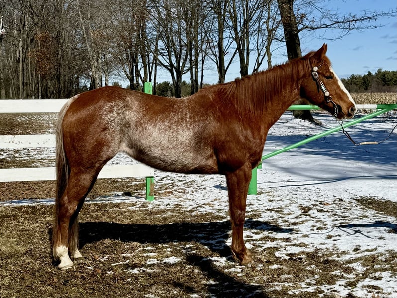 "AVAILABLE ON ONLINE HORSE AUCTION AT www DOT MagicHorseAuction DOT com BIDDING OPEN NOW thru TUESDAY | MAY 13th - BUY IT NOW AVAILABLE! *Final price will be determined on auction site* CONSIGNOR CONTACT INFO: Cori Ames 814-229-2674 LOCATION: Shippenville, PA "Hello, my name is Baylor. I am a Red Roan Registered Quarter Horse, I turn 11yrs at the end of May, and I stand around 15.2 hands. My registered name is HesJessDancing. I mainly enjoy barrel racing, and also trail riding, but I also love participating in several other gaming events including pole bending, raised box keyhole, and more. I have been taken to the county fair which I qualified for districts each time, and also moved onto states. I have run in rodeos, large and small shows, indoor and outdoor arenas. I can be handy and would be best fit with a confident rider, not for beginners. On the trail I can cross water, logs, bridges, and will go anywhere you tell me to go. I have been riding mostly solely on a trail but can also be ridden in a small to large groups. I am looking for my forever home. *He has right foundation, solid feet with good confirmation. *He only has front shoes on right now, and trail rides with saddle or bareback. *He ties, loads, hauls, baths, and great for the farrier. *He's a kindhearted boy who will come to you in the pasture. *On 4/4/25 he was fully checked by the vet, given Encephalomyelitis- Rhinopneumonitis, Influezna Eastern/Western, killed virus, tetanus, rabies, and coggins. A CVI will be done once sold. *I am including images from previous vet checks and his CVI from last year. The only reason Baylor is being sold is due to no fault of his own, but because my daughter and him are not connecting. He has done a lot better with a more confident rider. We recommend a very confident intermediate, or experienced advanced rider."