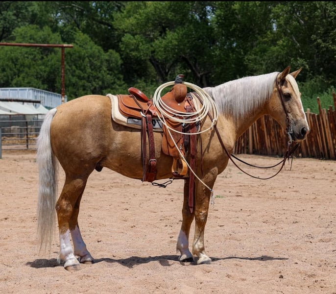 ONLINE AUCTION Place your bids at www.PlatinumEquineAuction.com Starting Bid $3500 Auction ends August 11th, 2024 Need a new saddle? Check out White Rock Saddles on our website or Facebook! If you’re looking for a big stout trail horse deluxe look no further! Zeus is a 10 year old, 15.1hh, stout made golden palomino draft cross gelding. Whether you’re ready to hit the trails, mosey through town, or need to get a job done on the ranch, Zeus is your guy! This nice gelding grew up on the ranch being exposed to lots of miles and just about anything a horse needs to see, setting him up for a great future. Zeus has recently spent his time just being a nice trail horse and has been on plenty of camping and overnight trips. Take him down the rocky trails, or the green pastures and even through town, it won’t make a difference to this guy! This awesome boy is broke to walk, trot, and lope both directions and has a nice stop! Whether you ride everyday, or just a few times a month Zeus will be the same horse every time you pull him out of his stall. Surefooted, sound, and shod all the way around wearing a size 2 shoe! UTD on shots, wormer, shoes and teeth. Zeus and our ranch are located in beautiful Camp Verde, Arizona. We can help arrange delivery to any state across the US! For more info contact D/C Equine Dallas 804-822-2233. ONLINE AUCTION Place your bids at www.PlatinumEquineAuction.com Starting Bid $3500 Auction ends August 11th, 2024 Need a new saddle? Check out White Rock Saddles on our website or Facebook!