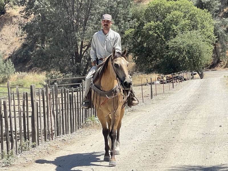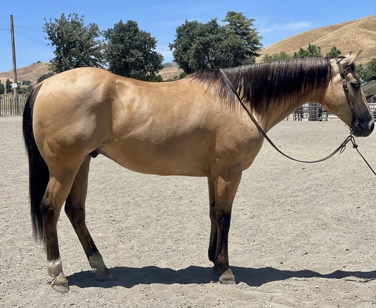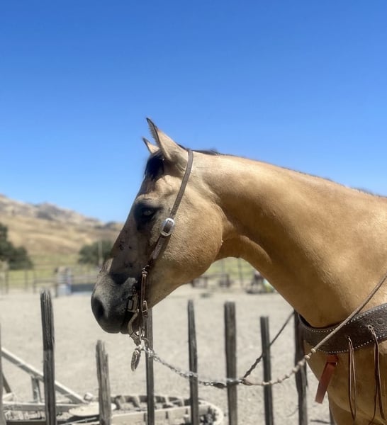 ONLINE AUCTION Place your bids at www.PlatinumEquineAuction.com Starting Bid $3500 Auction ends July 7th, 2024 Need a new saddle? Check out White Rock Saddles on our website or Facebook! Adobe is beautiful Buckskin with Dun markings. He is a gelding and is absolutely remarkable, not only with his beauty, but his loveable personality, willingness and capability. Adobe stands 15.1 hands and is 10 years old. He is the kind of horse that knows how to help you do a days work. He is great in the arena or out on the trails. He will literally go or climb up anything you ask him to. He loves trail riding and will lead, follow, or be in the middle of the pack. He has a good pace that covers ground and will get you to your destination safely. Adobe is good with other animals and all machinery. He is good with fly spray, vet, farrier tarps, and flags. Show him some love and he will be in your pocket. He will stand all day tied in the barn or in the trailer. If you’re looking for a horse that enjoys being ridden, this horse is for you. Adobe has a classy turn around, nice stop and easy lead departures. He has been used in the feedlot working cattle and out on the ranch for daily chores he’s good in the branding pen and will be easy for anyone to take out and enjoy. He is good outside crosses creeks, canyons and any other obstacles you may encounter. He is naturally broke, and extremely kind natured. Adobe has been started roping the sled and is adapting great. This horse is just a go to horse for anyone he rides correct and moves off leg cues and uses his hind end well. This is a horse you will look long and hard to find because they are not easy to let go of. He is current on worming and vaccinations and has zero bad habits. He is very eye catching and gets complimented everywhere he goes. Pleas contact Longhorn Ranch Dina 831-537-1915 Located in Paicines, CA. ONLINE AUCTION Place your bids at www.PlatinumEquineAuction.com Starting Bid $3500 Auction ends July 7th, 2024 Need a new saddle? Check out White Rock Saddles on our website or Facebook!