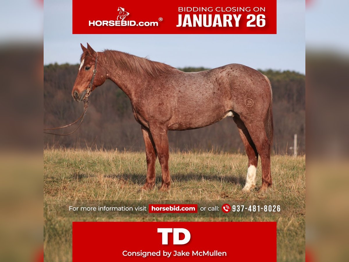 𝐉𝐀𝐍𝐔𝐀𝐑𝐘 ⭐️𝑨𝒍𝒍 𝑺𝒕𝒂𝒓 𝑳𝒊𝒏𝒆𝒖𝒑⭐️ Happening now thru MONDAY | JANUARY 26th - Available EXCLUSIVELY on HorseBid's website! For more details and to register visit: www.Horsebid.com CONSIGNOR CONTACT: Jake McMullen 937-481-8026 LOCATION: Berea, KY BREED: AQHA REGISTERED: Yes REGISTERED NAME: TDL Gumbo Hancock COLOR: Red Roan HEIGHT: 15.2 AGE: 12 GENDER: Gelding TD is a beautiful red roan gelding that is standing 15.2h+ tall. He registered in the AQHA, is a 2014 model and will weigh over 1300lbs. TD is super friendly and easy to handle! He is a horse for all jobs, anything on the ranch from sorting to pasture roping, to trails up in the rugged mountains... he will do it all! TD was born and raised in Montana, he has been ridden up in the rugged mountains and hunted off of. TD has spent time working in Texas at a feedlot, riding pens, loading trucks, roping and doctoring sick ones. You can leave him off for a couple months, tack him up, step right on him and he will walk off gentle. He has a smooth jog, takes his leads in a nice slow lope and has a good stop. He reins around and is one hand broke. TD could go English and shows talent at jumping. He has been exposed to all kinds of wildlife and works well with stock dogs. If you want to feel like a trail boss and blaze the trails or if you need to get a job done out on the ranch… TD will work or you! Located in Berea, KY. Shipping available anywhere. For more information call Jake McMullen 937-481-8026