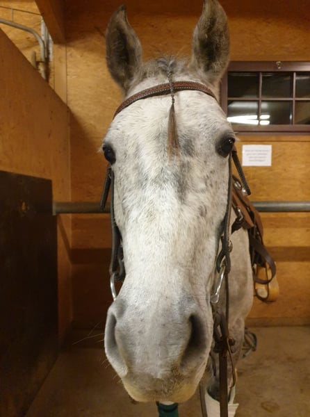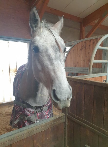 Wallach, geboren: 2014, Stockmaß: 155 cm, Schimmel, QuarterMix Charakter: sehr ruhig, unerschrocken und unglaublich verschmust, sehr, sehr menschenorientiert. Er liebt • die Bodenarbeit, Spaziergänge, Geländeritte Ausgezeichneter Ausbildungsstand, sehr vielseitig gearbeitet, Western geritten, kennt auch die englische Reitweise. Hat eine Grundausbildung in der Reining, hat Reiter schon zum WRC gebracht. Er wurde sehr vielseitig ausgebildet, uns war es immer wichtig, dass er viel kennt. Ebenfalls kennt auch den Trail sowie Gymnastiksprünge. Beherrscht beim Reiten unter anderem • Seitwärts, 2 er Galoppwechsel, Ansätze zur Piaffe Unter dem Sattel ist er auf dem Platz/ in der Reithalle ein gemütliches Pferd. Er wurde immer, egal ob bei Longenarbeit oder vor dem Reiten, gut aufgewärmt. Im Gelände ist er sehr, sehr gerne, er geht gerne hinaus und erlebt etwas. Keine Angst vor Kühen, Autos, LKW, Tieren, Wind, Sturm, Fahrrädern… ect. Bodenarbeit: Kennt Seitwärts von mir weg bzw. auf mich zu, Hinterhand weg/ zudrehen, freies longieren als großer bzw. kleiner Zirkel um einen herum, spanischer Schritt, ablegen auf Kommando… Gesundheit: PSSM Test negativ, hatte nie Kolik oder ähnliches; Kein Koppen, Weben etc. Er hat ein Schimmelmelanom am Hals. Schmiede und verladefromm, kennt sowohl Barhuf als auch Beschlag. Läuft ebenfalls brav in der Führanlage. Er steht in einer Paddockbox; kennt von uns nur 24 Stunden Heu- Fütterung. Er sucht ein neues Zuhause, in dem er freizeitlich gearbeitet wird. Bei Fragen einfach melden (via WhatsApp oder einfach Anrufen😊). Weiteres Kennenlernen gerne möglich:)