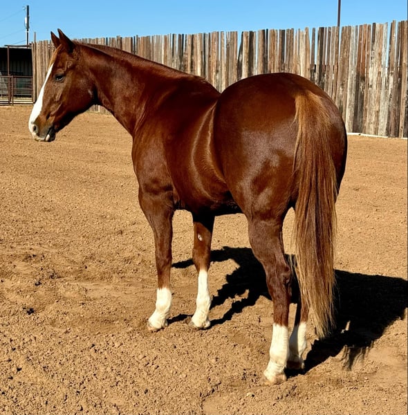 ONLINE AUCTION Place your bids at www.PlatinumEquineAuction.com Starting Bid $3500 Auction ends January 5th, 2024 Need a new saddle? Check out White Rock Saddles on our website or Facebook! Hickorys Indian Pepy aka Frank is a phenomenally bred 2013 model gelding that stands 14.3 and is built to perfection. He’s got lots of shape and is so much prettier in person. This boy is always there to greet you at the gate, will follow you around, and is always happy to be caught. You will fall in love with Franks personality and how sweet and loving he is. Frank is absolutely gentle and easy to be around always. He loves spending time with the kiddos getting groomed for hours. He was started in the cutting pen and used to turn back on, then took a full time job as a lesson horse for novice riders. He has taught many beginners to how to lope circles. Frank stops hard and correct, he picks up the correct lead, and he goes where you point him. Being that he’s been used by so many beginners, Frank has gotten used to being ridden two handed. He won’t have many fancy buttons but he is SAFE! He stands when he’s supposed to, he loads great, easy to blanket/saddle/bridle, and he gets along with everyone. This is an awesome gelding with so much personality and love to give. Frank is one you’ll be proud to own and happy to walk out and saddle every day. He is as solid as they come and we’d love to see him go to a wonderful new family for Christmas! He’s one Mom, Dad and all the kids can enjoy. Contact Brittany Pistorio 702-481-1121 Located in Stephenville, TX. ONLINE AUCTION Place your bids at www.PlatinumEquineAuction.com Starting Bid $3500 Auction ends January 5th, 2024 Need a new saddle? Check out White Rock Saddles on our website or Facebook!