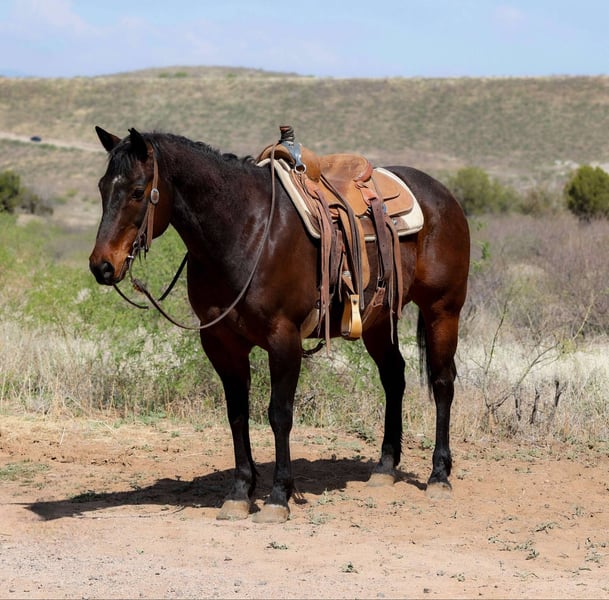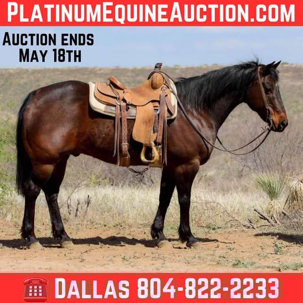 ONLINE AUCTION Place your bids at www.PlatinumEquineAuction.com Starting Bid $3500 Auction ends May 18th, 2025 Need a new saddle? Check out White Rock Saddles on our website or Facebook! Echo is a grade 12 year old gelding standing 14.3hh. This stout made, dense boned, big footed gelding has made lots of big circles and trekked tons of miles through the rough country of Arizona. If you can think of a job that needs done on a ranch, Echo has done it. With lots of miles and life experience under his belt, Echo is very sure footed and reliable whether you want to go do a long days work or take a leisurely ride down the trail. Not thing you come across will cause Echo to spook whether that be plastic bags, flowing water, barking dogs, fallen trees, thick brush, or even flowing traffic. Echo is as well rounded as one can get. This great is not just a great using horse, he’s a blast in the arena as well. He will walk, trot, and lope both ways with ease. Echo is always eager to work and easy to catch, good to groom, saddle, bridle, bathe, and shoe. Will come with a clean coggins and health! Transport can easily be arranged anywhere in the US!! Located in Camp Verde, AZ Contact D/C Equine Services Dallas 804-822-2233. ONLINE AUCTION Place your bids at www.PlatinumEquineAuction.com Starting Bid $3500 Auction ends May 18th, 2025 Need a new saddle? Check out White Rock Saddles on our website or Facebook!