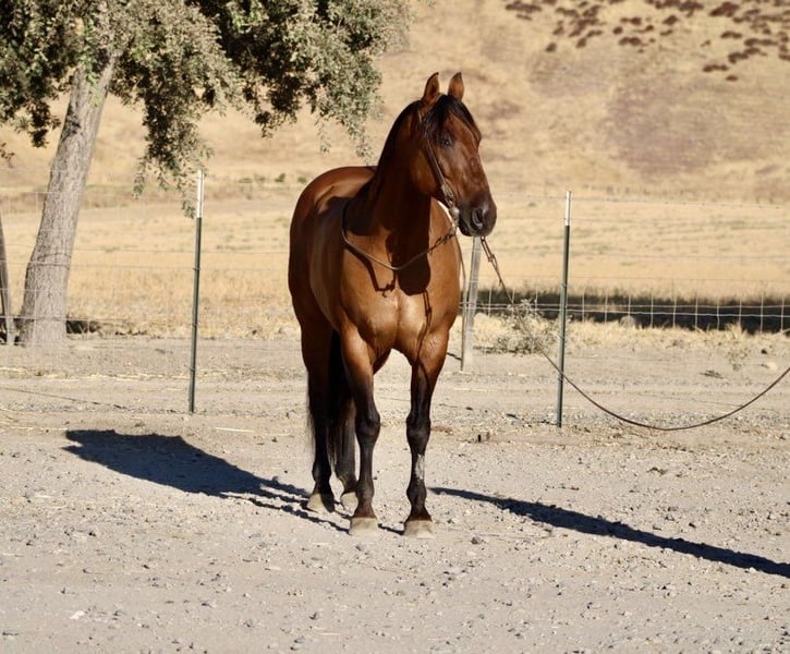 ONLINE AUCTION Place your bids at www.PlatinumEquineAuction.com Starting Bid $3500 Auction ends September 15th, 2024 Need a new saddle? Check out White Rock Saddles on our website or Facebook! Brazo is a striking 11-year-old dun, tiger striped legged, gelding. He’s an equine masterpiece that draws admiration wherever he goes. Standing a solid 15HH, his conformation exemplifies the ideal horse build, showcasing strength and agility. With extensive experience on the ranch, Brazo is not only brave and honorable but also a reliable partner who has penned and gathered cows, checked fence and branded all with ease. In the arena lopes effortlessly has a fluid stop and easy back up. His history includes participation in 4H events, drill as well as being an exceptional trail mount—perfect for any adventure you may embark upon. He has seen all trails obstacles and isn’t bothered by any of it. Known for his “in-your-pocket” personality, he follows you around like a loyal companion, displaying an affectionate demeanor that makes him exceptionally easy to handle. Trained in natural techniques, Brazo offers softness and suppleness both on the ground and under saddle; he’s forgiving yet responsive to his rider’s cues, making him suitable for beginners while still providing ample fun for seasoned riders seeking excitement. This gentle gelding excels in standing quietly when tied or being groomed; he’ll even fall asleep during belly scratches! His distinguished confirmation and solid black feet allows him to go barefoot all year long he will wear shoes if you prefer. Whether saddled up or ridden bareback, Brazo maintains composure—never getting spooked at unexpected sights or sounds—and showcases impressive skills including neck reining and responsive leg pressure transitions. His confidence shines through every trail ride; navigating diverse terrains effortlessly while remaining calm amidst wildlife encounters further solidifies his status as a true testament to his training and temperament. He pastures well with others and will go out alone or in a group setting. If you’re searching for a versatile horse capable of elevating your riding experience look no further. Please contact Longhorn Ranch Dina 831-537-1915 located at Paicines, CA. ONLINE AUCTION Place your bids at www.PlatinumEquineAuction.com Starting Bid $3500 Auction ends September 15th, 2024 Need a new saddle? Check out White Rock Saddles on our website or Facebook!