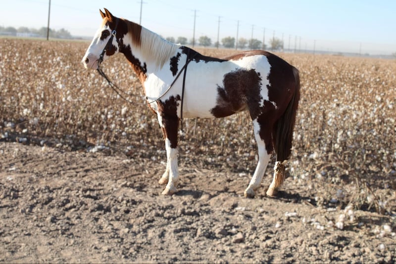 ONLINE AUCTION Place your bids at www.PlatinumEquineAuction.com Starting Bid $3500 Auction ends December 1st, 2024 Need a new saddle? Check out White Rock Saddles on our website or Facebook! Indio is a 11 yr old grade paint gelding he stands 15h exactly. Hes an absolute joy to have, he’s my go to in the roping arena or for the kids to ride down the road. Indio is a finished rope horse and also solid using ranch horse. I’ve been hauling him to jackpots from the number 12s down to the number 7s. He leaves flat, scores like a rock has a great move, he’ll take you to the pay widow. He has the smoothest lope you could ask for and great ranch horse walk. Hes so comfortable to ride outside he travels out like he has to get somewhere, you can ride him all day and enjoy your ride doesn’t matter if it’s working cattle or walking down the road or up in rough country he’s the one you want to be mounted on. He’s safe, safe and sure footed, he’ll take care of his rider doesn’t matter the Place or Environment. He’s easy to be around nothing bothers him he’s been around all the animals on the farm, traffic, flags, tarps, you name it he’s seen it all. He’s a perfect gentleman he’ll stand, saddle, bathe, load the trailer and hauls quite and easy. He’s also the one we use to give the kiddos rides at the parties or at the ranch where we have a youth program called Serna ranch youth leadership program in El Paso Tx where schools bring their students to learn about the farm or cowboy way . Indio has been a joy and he would be a great fit for anyone’s program or family no matter what it is he’s safe and reliable! He’ll stand out anywhere you go. He sells with a 100% guarantee in every way. No vices of any kind Please call Lauren Lara 915-474-5453 with any questions thank you. ONLINE AUCTION Place your bids at www.PlatinumEquineAuction.com Starting Bid $3500 Auction ends December 1st, 2024 Need a new saddle? Check out White Rock Saddles on our website or Facebook!
