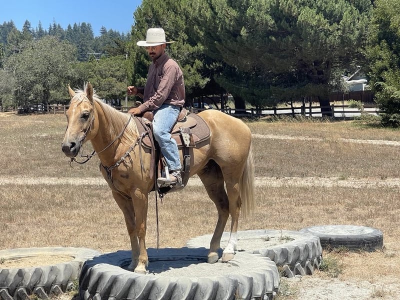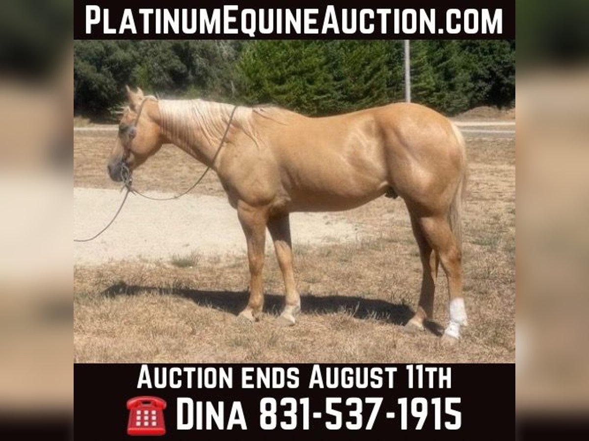 ONLINE AUCTION Place your bids at www.PlatinumEquineAuction.com Starting Bid $3500 Auction ends August 11th, 2024 Need a new saddle? Check out White Rock Saddles on our website or Facebook! Applesauce is a handsome palomino gelding he is a solid built and stout boy standing 15.1 hands and 11 years old. Applesauce is the definition of a true gentleman. He is a trusty steady eddie ride. He is content cruising down any trail and will be the one you can count on to be confident and will to navigating through most any type of terrain. He will go through dense forest, cross rushing rivers, and climb the highest mountains remaining sure footed. Applesauce has been ridden at state parks and is used to hikers, bikers and families walking the trails. He is not bothered with any of it. He has been ridden by timid riders to advanced. He will be patient and gentle will adapt for different levels. Applesauce has seen all the trail obstacles and will willingly accomplish them. Applesauce will calmly walk over the tittering bridge, climb right on the tires, walk over poles and try most any obstacle you can think of. He doesn’t get bothered by the tarp, ball or flying flags. Applesauce will walk trot and lope correct circles and picks up the correct leads and transitions nicely. He has a nice stop and easy back up and is very responsive to cues. He has been out to gather cattle, checking fence and ride through pairs. He is easy to tack up, clip and loves to be groomed he will talk to you when you go out to catch him. He is very friendly and happy to go out with you. This boy would be a great addition to a family that loves a horse with personality. Applesauce is a more whoa then go and very content just moseying along checking out new sights. He will meet you at the gate and is happy to see you. He is the one you can count on for countless adventures and to know he will always be a solid companion. To meet this handsome hunk contact Longhorn Ranch, Dina 831-537-1915 located in Paicines, CA. ONLINE AUCTION Place your bids at www.PlatinumEquineAuction.com Starting Bid $3500 Auction ends August 11th, 2024 Need a new saddle? Check out White Rock Saddles on our website or Facebook!