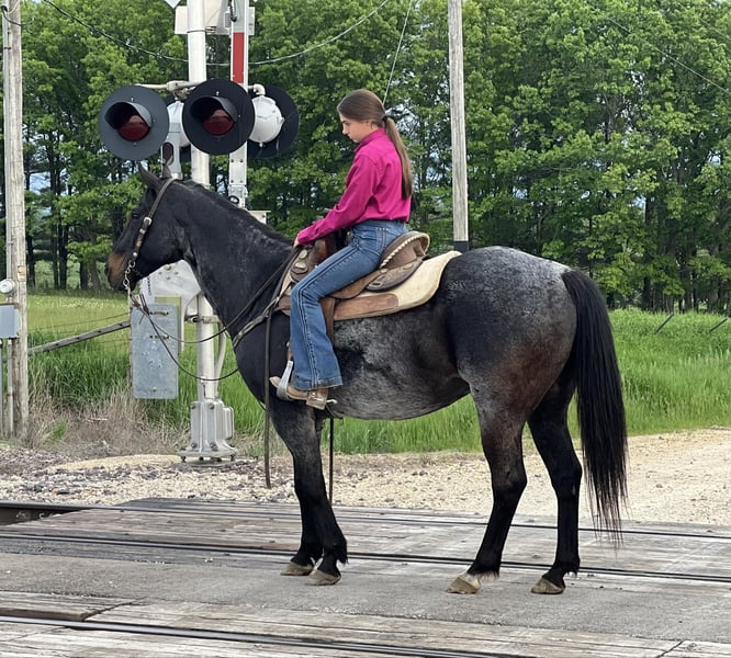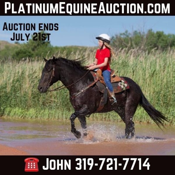 ONLINE AUCTION Place your bids at www.PlatinumEquineAuction.com Starting Bid $3500 Auction ends July 21st, 2024 Need a new saddle? Check out White Rock Saddles on our website or Facebook! Boonefide Cowboy Is an 11-year-old beautiful Blue/Bay Roan gelding that stands 15.1 hands tall and weighs 1250 pounds. Boone has great confirmation is good headed. He has good feet, straight legs, & very attractive. Boone is a true all-around family horse from grandmother to granddaughter. Everyone in my family rides him. Everyone loves him. He is easy to catch and has impeccable ground manners. He stands good for the farrier and to be clipped and bathed, he stands like a statue to mount and dismount. He crosses water with no problem if it’s a mud puddle or 3 feet deep. He does not spook from anything including wildlife, dogs, skid loaders, traffic or motorcycles. We have used him to carry the flag at the play days and he has been shown by all different kids of a variety of levels in 4H and he has excelled very much in trail class and walk trot. He has been on all week trail rides in big state parks like Eminence, Missouri and Matzel Game Reserve. He has been used for lessons for total beginners of all ages. Boone never gets in a hurry and he never gets fresh with time off. He is registered in the American Quarter Horse Association and has an impeccable set of papers such as Pepto Boonsmall and Highbrow cat. Boone stays sound, never needs any maintenance and he is an easy keeper. He loves trail riding and he is kind and forgiving for the little kids. We have also used him to Pony other horses and break colts. He has been around cattle on our farm. We have taken Boone to mounted shooting shows, along with parades for the Fourth of July. Boone is a genuine all-around gentleman for the whole family!! Located in Lisbon, IA. Contact John McPhail 319-721-7714. ONLINE AUCTION Place your bids at www.PlatinumEquineAuction.com Starting Bid $3500 Auction ends July 21st, 2024 Need a new saddle? Check out White Rock Saddles on our website or Facebook!