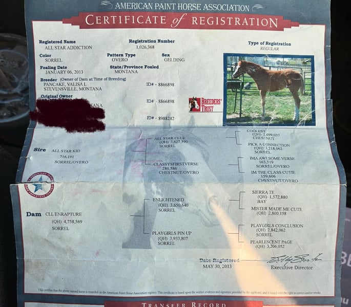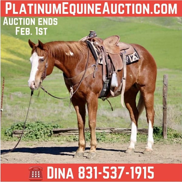 ONLINE AUCTION Place your bids at www.PlatinumEquineAuction.com Starting Bid $3500 Auction ends February 1st, 2026 Need a new saddle? Check out White Rock Saddles on our website or Facebook 2013 APHA Sorrel Overo Gelding • 15.1 Hands Big • Gentle • Safe If you’ve ever said, “I just want a big, gentle horse that makes life easy,” Star has been waiting for you. He’s tall, kind, and unbothered by the world around him—the type that seems to wake up every day thinking, “Yep, this is fine.” Out on the trail, Star is exactly who he appears to be. Quiet, steady, and sure-footed, he confidently handles hills, water crossings, bridges, and new terrain without making it an event. He’s the horse you ride when you want to enjoy the scenery instead of managing the ride. Star has also spent time checking cattle and genuinely enjoys being around cows. He stays relaxed, attentive, and willing, making him a great fit for ranch work or for riders who just want a horse that’s comfortable and sensible around livestock—no drama, no opinions. In the arena, Star keeps things simple and pleasant. He walks, trots, and lopes willingly, carries himself nicely, stops off your seat, and backs lightly. He’s soft in the bridle, easy to guide, and comfortable to ride—no instruction manual required. Star is well exposed and very unphased by everyday chaos. Flags, tarps, balls, tires, pool noodles, dogs, farm equipment, and wildlife are all just background noise to him. He hauls well to new places, rides out alone or in a group, and settles into new environments like he’s been there before. Around the barn, Star continues to be a favorite. He’s easy to tack up and groom, stands well for the farrier, loads and hauls quietly, and does well in a stall or pasture. He’s the kind that meets you at the gate and seems genuinely pleased you showed up. Breeding: Star is APHA registered and sired by All Star Kid, known for producing good-minded, rideable horses. His pedigree blends Paint color with a solid Quarter Horse foundation, resulting in a gelding with good structure, a steady disposition, and a very enjoyable way of going. Star is the kind of gelding people hope to find but rarely do—big, gentle, safe, and easy to enjoy. He’s suitable for a wide range of riders, from those building confidence to experienced riders wanting a quiet, dependable partner. Trail rides, arena time, cattle days, or just enjoying a really nice horse—Star fits right in. Located in Paicines, CA Dina – Longhorn Ranch | 831-537-1915 Nationwide shipping available with reputable haulers ONLINE AUCTION Place your bids at www.PlatinumEquineAuction.com Starting Bid $3500 Auction ends February 1st, 2026 Need a new saddle? Check out White Rock Saddles on our website or Facebook