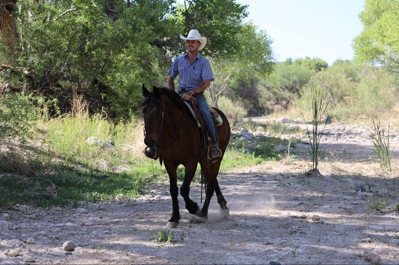 ONLINE AUCTION Place your bids at www.PlatinumEquineAuction.com Starting Bid $3500 Auction ends June 8th, 2025 Need a new saddle? Check out White Rock Saddles on our website or Facebook! Arthur is a grade 12 year old Friesian Quarter Horse cross standing 15.2hh. This gorgeous gelding is the absolute definition of gentle, in your pocket, and broke! Arthur handles absolutely everything we throw at him with confidence and a willing attitude. Whether you’re looking for your next adventure buddy or a floaty mover in the arena Arthur is your guy! Arthur will walk, trot, and lope both ways easily picking up both his leads. Collected up in an english style frame or on a draped rein like a western horse. He will also neck rein, sidepass phenomenally, has a great stop, carry a flag, and will ride just as good bareback! Arthur is not just a dream in the arena, he’s just as great to ride outside! Fallen logs, flowing water, rocky terrain, even speeding traffic through town, you name it and Arthur will cruise on by surefooted as can be without batting an eye! Absolutely no buck, or bolt, let Arthur sit and he will be the same horse every time. Arthur is easy to catch, in your pocket, and good to groom, saddle, bridle, bathe, shoe, and load! Will come with a clean coggins and health. Transport can easily be arranged anywhere in the US!! Contact D/C Equine Services Dallas 804-822-2233 Located in Camp Verde, AZ. ONLINE AUCTION Place your bids at www.PlatinumEquineAuction.com Starting Bid $3500 Auction ends June 8th, 2025 Need a new saddle? Check out White Rock Saddles on our website or Facebook!