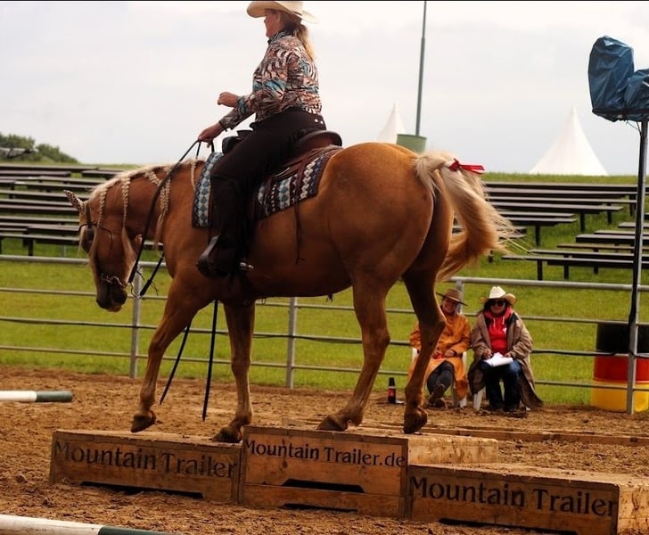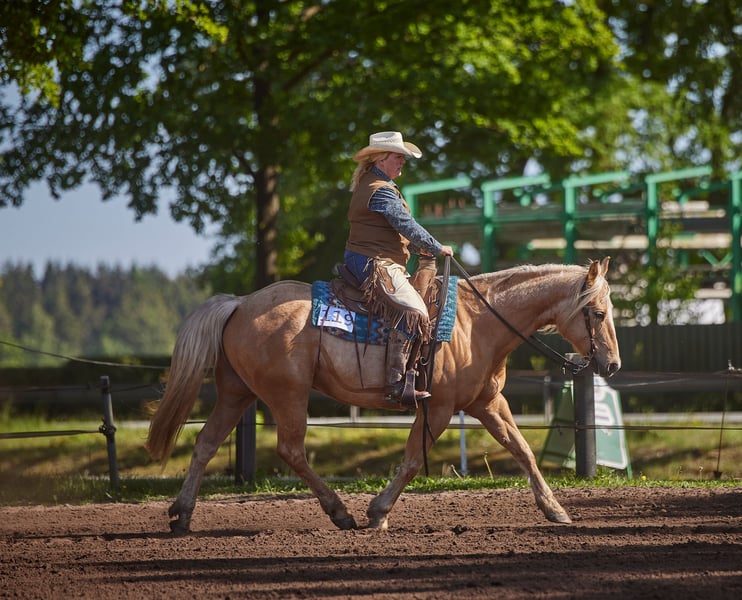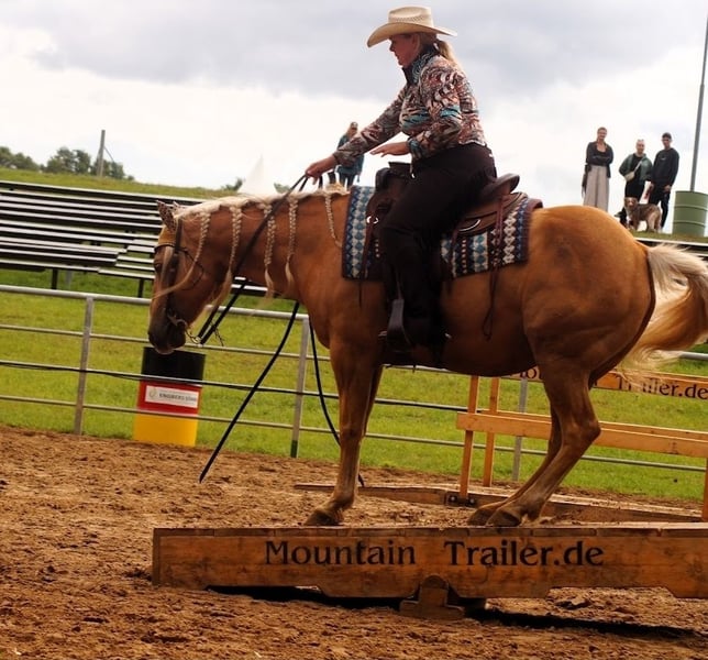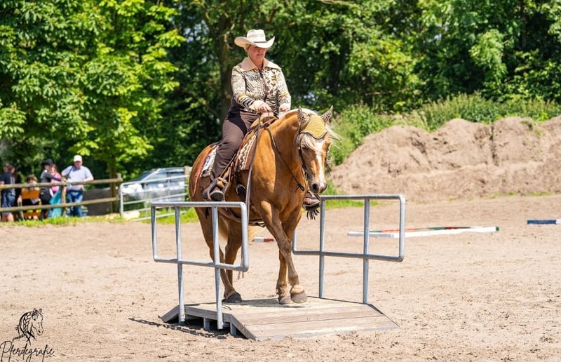 I am reluctantly selling my 13-year-old gelding due to lack of time. He started competing in the tournament scene at the age of 10, so he is still completely fresh. In this short time, he has achieved countless placements and victories in Ranch Riding, Western Ranch Rail, Trail, Ranch Trail, and Western Horsemanship (EWU LK 1/2). We have also been successful in the Netherlands, being two-time Dutch champions in Ranch Riding (LK 1+2) and two-time vice-champions in Trail and Ranch Trail. Nuke is versatile and has been exposed to cattle multiple times, enjoys speed rodeo, knows all the Extreme Trail obstacles, is naturally confident in the terrain, and is not afraid of anything. He is very solidly built, passed the veterinary examination with flying colors about 3 years ago, and has excellent hooves and very good teeth. There are no health restrictions; he is in perfect health! He is kept in a paddock but is also accustomed to a box and can handle hay and pasture 24/7. He is always calm at competitions, clinics, and on vacation. He can perform all maneuvers, although he hasn't been worked much on the stop as he doesn't have sliders. He can change leads in the air but can still be refined. No vices, rather high-ranking. He can definitely be ridden by children or returning riders, but he does not appreciate rough aids. He prefers to go in a bit or bosal. He enjoys groundwork/free work and wants to work. Unfortunately, we have too many horses, and the young ones need to be started under saddle, which is why he is being sold due to lack of time. It’s simply too much of a shame for him to just stand around!