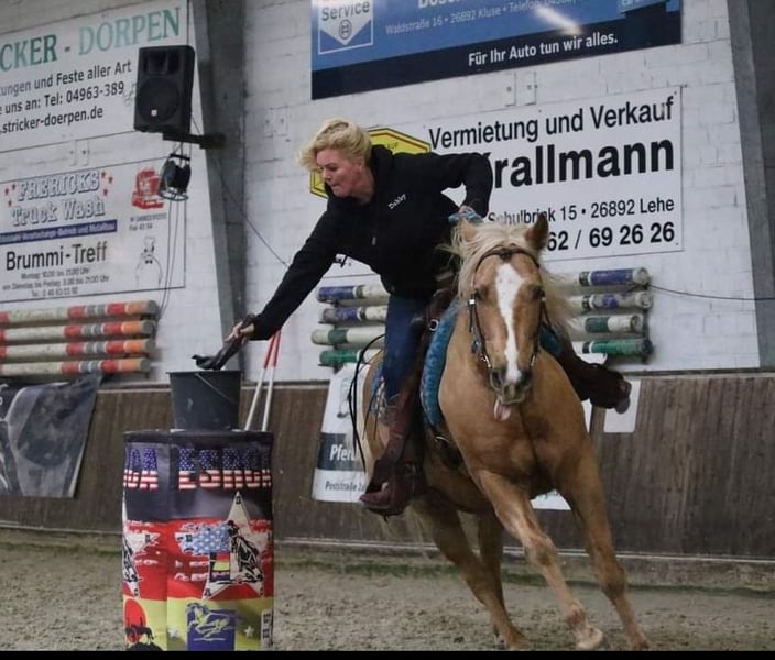 Sprzedam z ciężkim sercem z powodu braku czasu mojego 13-letniego wałacha. Zaczął startować w sporcie jeździeckim dopiero w wieku 10 lat, więc jest całkowicie niewyczerpany. W tym krótkim czasie zdobył niezliczone miejsca i zwycięstwa w Ranch Riding, Western Ranch Rail, Trail, Ranch Trail oraz Western Horsemanship (EWU LK 1/2). Również w Holandii odnosiliśmy sukcesy i jesteśmy dwukrotnymi mistrzami Holandii w Ranch Riding (LK 1+2) oraz dwukrotnymi wicemistrzami w Trail i Ranch Trail. Nuke jest wszechstronnie wykształcony, wielokrotnie pracował z bydłem, ma radość z Speed Rodeo, zna wszystkie przeszkody Extreme Trail, jest naturalnie pewny w terenie i nie boi się niczego. Jest bardzo stabilnie zbudowany, przeszedł AKU około 3 lata temu z wyróżnieniem i ma świetne kopyta oraz bardzo dobre zęby. Brak ograniczeń zdrowotnych, jest w doskonałej formie! Stoi w boksie otwartym, zna również boks, toleruje siano i trawę 24/7. Zawsze jest spokojny na zawodach, kursach i podczas wakacji. Zna wszystkie manewry, jednak nie był dalej pracowany nad zatrzymaniem, ponieważ nie ma sliderów. Zmienia nogi w locie, ale można to jeszcze udoskonalić. Nie ma złych nawyków, raczej jest dominujący. Może być jeżdżony przez dzieci lub osoby wracające do jazdy, ale nie lubi szorstkich pomocy. Najchętniej chodzi w wędzidle lub bosalu. Cieszy się z pracy na ziemi/wolnej pracy i chce pracować. Niestety, mamy zbyt wiele koni, a młodzież musi być wprowadzona w trening, dlatego sprzedaję z powodu braku czasu. To po prostu szkoda, żeby stał bezczynnie!