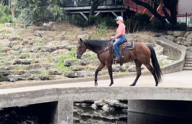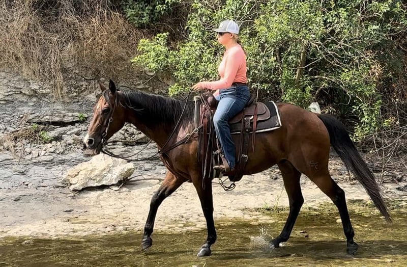 ONLINE AUCTION Place your bids at www.PlatinumEquineAuction.com Starting Bid $3500 Auction ends August 11th, 2024 Need a new saddle? Check out White Rock Saddles on our website or Facebook! Boon SF Starlight is a 2013 model, 15.3H bay AQHA gelding. We LOVE Boon. He’s been one of the best, most broke, GORGEOUS horses we’ve offered in a long time. He’ll do it all, you name it, it’s on his resume. Kids, adults, beginners, pros, wives, husbands, mother in laws, you name the person and they can ride him. He’s seen a million miles of country and has been used as a REAL deal ranch horse. You can do just about anything on this gelding from the ranch to the arena and he’s the perfect all around, versatile horse for the whole family. He’s FANCY broke! There won’t be a thing you don’t like about the way this guy handles. Boon neck reins with ease, moves perfectly off leg and has a HUGE stop. He’s GENTLE and safe! He goes the exact speed you ask, when you ask it and he’ll walk a snails pace or lope right off in your hand if desired. He rides low headed and “chill” all the time and never is hot or antsy. He takes to new situations and places perfectly! He has such a sweet calm, cool collected, people pleaser personality. Boon would be the PERFECT fit for anyone looking for one the whole family can enjoy, or anyone wanting a fancy, ready to go ranch versatility horse, ranch horse, 4H horse, sorter or fancy trail horse! He’s traffic safe, trail safe, ATV safe, and he goes through water! He is absolutely a barn favorite here and anyone can jump on and go! He’ll ride your ability, if you don’t know how to operate his buttons, you don’t need to in order to enjoy a safe fun ride. Grandma can jump on and go on a turtle pace trail ride, then a cowboy can go drag calves on him. Boon is one of a kind and they sure don’t come like him often. He has a phenomenal pedigree, brains and talent. He does everything you need a good horse to do with zero issues and gets along with everyone great. He is UTD on teeth and feet and is ready for his next person to enjoy him! Go to his website page northtexashorsecompany.com/boon for more pictures and footage! Please call Blair with North Texas Horse Company for more info at 817-757-3046. We are located in Weatherford, TX and can help arrange affordable shipping to anyone!! ONLINE AUCTION Place your bids at www.PlatinumEquineAuction.com Starting Bid $3500 Auction ends August 11th, 2024 Need a new saddle? Check out White Rock Saddles on our website or Facebook!