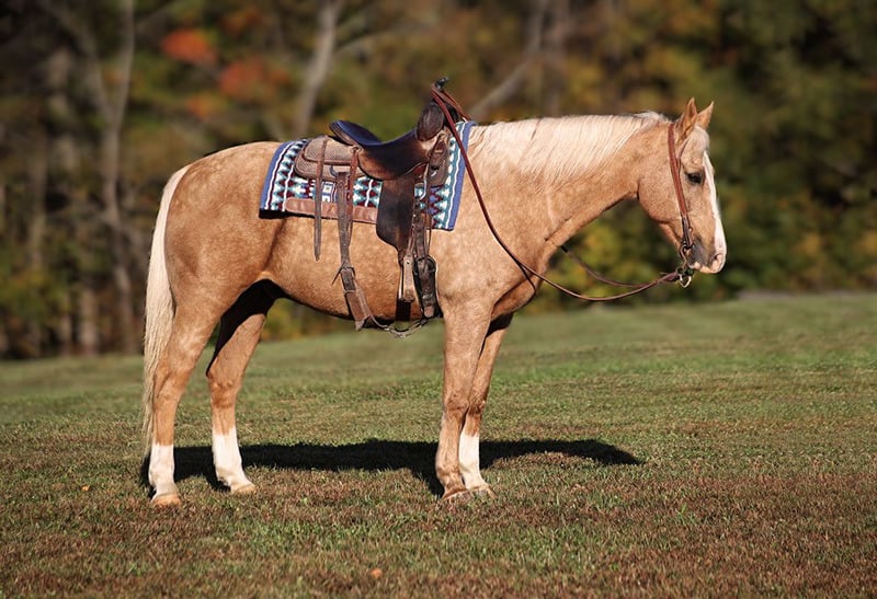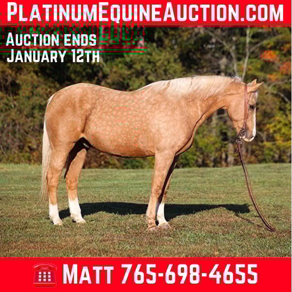 ONLINE AUCTION Place your bids at www.PlatinumEquineAuction.com Starting Bid $3500 Auction ends January 12th, 2024 Need a new saddle? Check out White Rock Saddles on our website or Facebook! If Barbie has a dream horse this would be him! Abel is a well built gelding standing around 15.3hh, he is an 11 year old, dark dappled palomino with white socks. We got Abel from the family who raised him. He has been trail ridden in multiple states. He will cross creeks, ditches, logs and navigate rough rocky areas. He is safe riding in traffic. Abel has been ridden by older folks and kids as well, just cruising along slow and easy down the trails is his preferred speed. We have used him around the ranch to check cows and sort some on him as well. He is a confident horse on the trails and will lead the crew, head out alone with no issues! He has been exposed to all kinds of wildlife such as deer or turkey or other animals like cows or dogs and will go anywhere that he is asked too. He has been rode many miles in the mountains of Eastern Kentucky and encountered every obstacle possible on the trail. He will go up or down even the steepest slopes, across deep creeks, over downed trees, and over all types of rough terrain while still being sure footed. Abel is not cinchy, cold backed, does not crib or weave. Here is one horse that will get you noticed anywhere that you go!!! Feel free to call Lucky 13 Equine Matt 765-698-4655 or Lysandra 765-717-2041 with any questions or to make a buy it now offer. Located in Brodhead, KY. ONLINE AUCTION Place your bids at www.PlatinumEquineAuction.com Starting Bid $3500 Auction ends January 12th, 2024 Need a new saddle? Check out White Rock Saddles on our website or Facebook!
