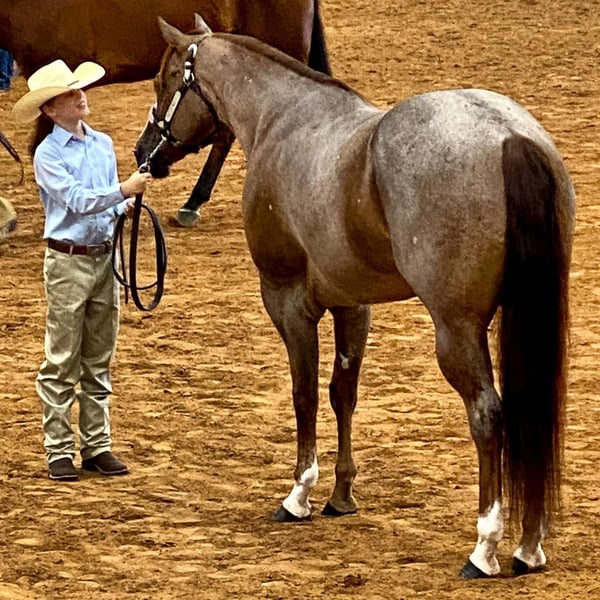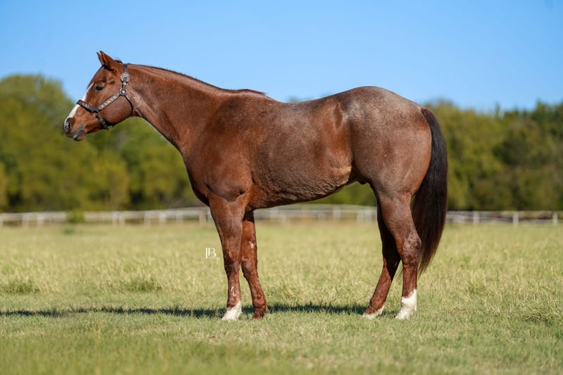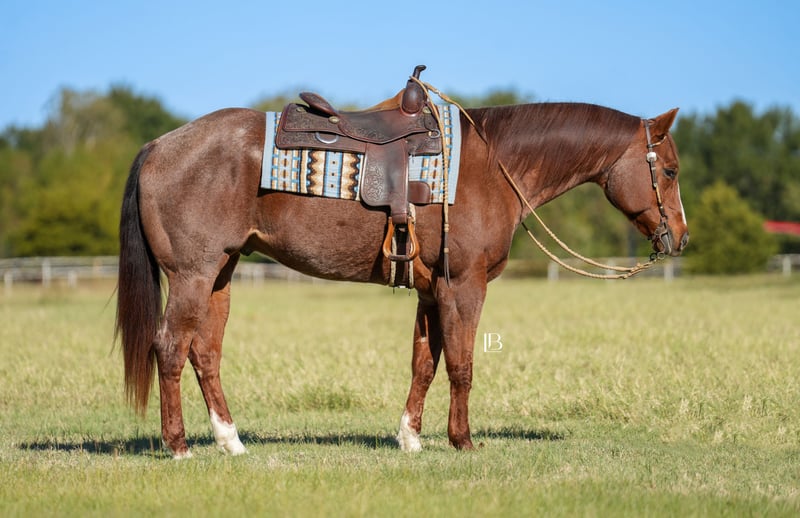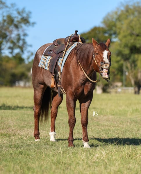 ⚜️ 𝓗𝓮𝓻𝓲𝓽𝓪𝓰𝓮 𝐖𝐢𝐧𝐭𝐞𝐫 𝓒𝓵𝓪𝓼𝓼𝓲𝓬⚜️ Happening now thru MONDAY | DECEMBER 29th - Available EXCLUSIVELY on HorseBid's website! For more details and to register visit: www.Horsebid.com CONSIGNOR CONTACT: LB Equine Sales, LLC 214-449-8028 LOCATION: Terrell, TX BREED: AQHA REGISTERED: Yes REGISTERED NAME: Redwinder COLOR: Red Roan HEIGHT: 16 AGE: 12 GENDER: Gelding Need a safe, reliable, teacher/packer type that’s YOUTH and OLD lady safe?! Big Red is the man! This gentle giant has many show miles under his belt. He went Circuit Champion in Youth Aged Geldings and Reserve Champion Open Aged Geldings at the 2021 AQHA World show with a youth rider! He has been shown at color breed congress and received 5th in All Breed Amateur W/T Ideal Ranch Riding with a youth. You will absolutely adore his kind big doe eyes, sweet loving temperament, and puppy-dog like personality. Easy – the same guy every time – with extensive miles under his belt. Get ready because Big Red will help you improve your confidence in the ring! Big Red strides out beautifully for the hunter under saddle! He goes around gorgeous across the ground with a lovely big stride that is eye catching. He would make a brilliant western dressage horse as well! He is soft in a snaffle and comes into a frame effortlessly. Side passes, knows his leads, pivots, and has a great whoa button/back up! Big Red does not require any lunging prior to riding and is the same ride whether you ride him once a month or once a week. Safe with no buck/bolt/rear. He ADORES toting around youth riders and is a straight forward kinda guy – never looking to cheat you. Suitable for any level rider, I would love to find him another youth kiddo or older person to tote around. He adjusts to his rider and knows his job when he needs to go in packer mode. He will pony other horses, and is never grumpy, he is always willing and ready for your next cue. He has an adorable friendly out-going personality, is easy to catch/tie, stands quiet as a mouse for mounting, respectful for vet/farrier etc. Crosses water, over bridges, and steps over poles out on the trail too!! With his show experience, his kind, and seasoned temperament we know he will make a great partner for any youth or adult looking for confidence in and outside the show pen! Sells with a vet report on file, 100% sound and goes BAREFOOT! Will x ray good/clean! recently dewormed, vaccinated, and teeth floated. Not currently on any maintenance as well. He is in his winter woolies, and wears a size 80 blanket when it drops below freezing. He can live a show horse lifestyle in a stall (neat in a stall) or be kicked out to the pasture with friends just fine. No known vices. Hops right in the trailer, trailers well, backs off like a gentleman. HYPP N/N per his papers. All bill of sale paperwork and AQHA papers in hand and will be signed/transferred at the conclusion of the sale. Looking for a kind and well-seasoned been there done that gelding to show in the all-around or play at home for pleasure? You’ve found your match! Shipping can be coordinated to any location.
