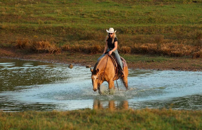 ♦️ DER AMERIKANISCHE FALLKLASSIKER ♦️ Findet jetzt bis MONTAG, 20. OKTOBER, statt – exklusiv auf der Website von HorseBid! Weitere Details und Anmeldung unter: www.Horsebid.com VERKAUFERKONTAKT: Lacey Wilf, 501-940-8704 STANDORT: Quitman, AR RASSE: Quarter Horse ZÜCHTUNG: Nicht registriert FARBE: Buckskin GRÖSSE: 16,2 hh ALTER: 12 Jahre GESCHLECHT: Wallach Dino ist ein auffälliger Buckskin-Wallach mit 16,2 hh, 12 Jahren, der durch seine Größe, Präsenz und kräftigen Knochen sofort ins Auge fällt. Er ist groß, sanft und absolut benutzerfreundlich – der Typ, der selbstbewusst auftritt und so zuverlässig ist, wie man es sich wünscht. Er trägt sich mit Selbstvertrauen und reitet sich so angenehm, wie es nur geht. Er ist schon an die Kopf- und Halsrichtung gewöhnt, geht problemlos an der Kordel, zieht kräftig am Horn, stellt sich gut und erzielt gute Scores – alles in ruhiger und gelassener Haltung. Auf der Ranch hat Dino viel echte Arbeit geleistet, beim Einfangen, Sortieren, Tierarztbesuchen und Kontrollieren von Rindern in großem Gelände. Auch im Verkaufsstall ist er ein erfahrener Veteran. Er fühlt sich in engen Gängen und lauten Ställen wohl, arbeitet an Toren, pennt alle Arten von Vieh, nimmt den schnellen Rhythmus, Echos und Trubel gelassen hin. Auf dem Trail ist er unkompliziert und der „Zeig-und-Geh“-Typ. Dino überquert Wasser, Brücken, Dickicht und unebenes Gelände ohne Zögern, ist sicher auf Felsen unterwegs und lässt sich alleine oder in der Gruppe problemlos führen. Er steht ruhig zum Aufsteigen, reitet neck reins, reagiert auf die Beine und trägt einen weichen, gelassenen Galopp, der lange Strecken angenehm macht. Am Boden ist er ebenso kooperativ – leicht zu fangen, satteln, bridlen, verladen, transportieren, baden und beschlagen. Er bleibt ruhig beim Anbinden und ist nach einer Pause genauso zuverlässig wie bei regelmäßigem Reiten. Das Beste: Dino passt zu fast jedem Reitniveau. Er ist ehrlich genug für einen vorsichtigen Anfänger, groß und bruchfest genug, um damit Geld zu verdienen, und freundlich genug, um Gästen ein vertrauensbildendes Erlebnis zu bieten. Dino hat einen liebevollen, umgänglichen Charakter, der jeden begeistert – er liebt Menschen, begrüßt dich am Tor mit sanftem Blick und strahlt eine ruhige, freundliche Präsenz aus, die ihn unwiderstehlich macht. Wenn Sie einen großen, eleganten Wallach suchen, der zuverlässig arbeitet und alles unkompliziert macht – im Reitstall, auf der Ranch oder auf dem Trail – dann ist Dino Ihr Pferd. Er meistert jede Aufgabe und lässt Sie dabei groß aussehen!
