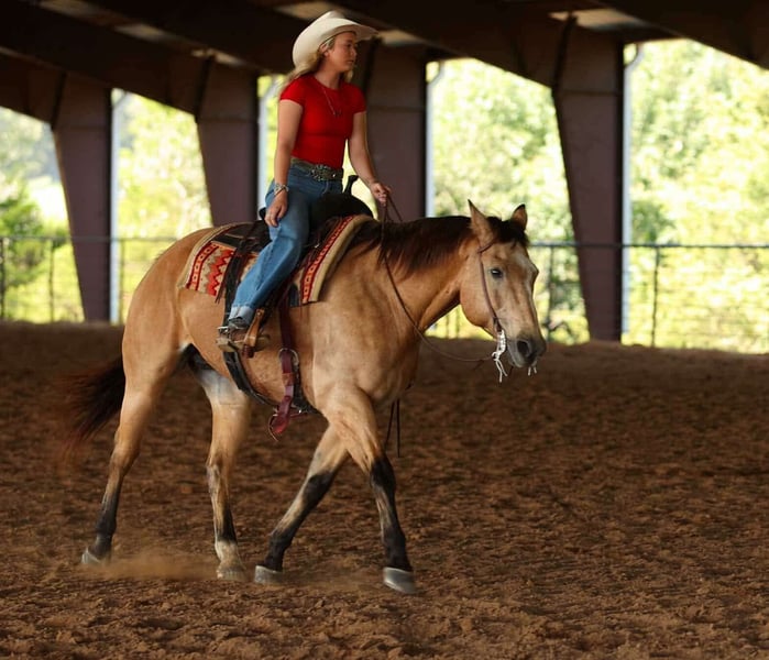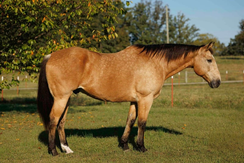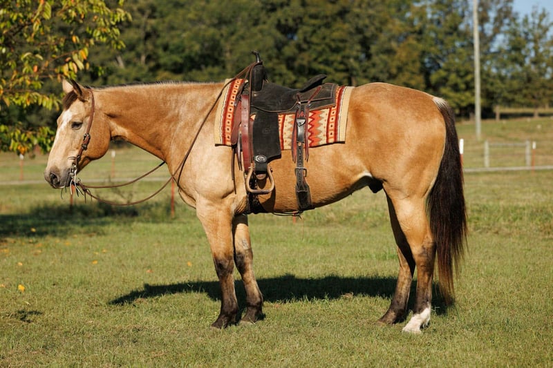 ♦️ 𝐭𝐡𝐞 𝐀𝐌𝐄𝐑𝐈𝐂𝐀𝐍 𝓕𝓪𝓵𝓵 𝓒𝓵𝓪𝓼𝓼𝓲𝓬 ♦️ Happening now thru MONDAY | OCTOBER 20th - Available EXCLUSIVELY on HorseBid's website! For more details and to register visit: www.Horsebid.com CONSIGNOR CONTACT: Lacey Wilf 501-940-8704 LOCATION: Quitman, AR BREED: Quarter Horse REGISTERED: No COLOR: Buckskin HEIGHT: 16.2 AGE: 12 GENDER: Gelding Dino is a striking 16.2 hand, 12-year-old buckskin gelding with the kind of size, presence, and bone that commands attention. He’s big, gentle, and absolutely user-friendly—the kind that carries himself with confidence and rides as right as they come. He’s been headed on some and handles a rope with ease, pulls stout to the horn, faces well, and scores good, all while staying calm and collected. On the ranch, Dino has seen plenty of real work while gathering, sorting, doctoring and checking cattle across big country. He’s a seasoned veteran in the sale barn as well. Comfortable in tight alleys and noisy pens, working gates, penning all classes of stock, and taking the fast pace, echoes, and commotion in stride. On the trail he’s straightforward and the “point-and-go” type. Dino crosses water, bridges, brush, and rough country without hesitation, is sure-footed on rock, and will ease along alone or settle into a group without fuss. He stands to mount, neck reins one-handed, moves off your leg, and carries a soft, collected lope that makes long miles easy. On the ground he’s just as cooperative—easy to catch, saddle, bridle, load, haul, bathe, and shoe. He ties quiet and is the same horse after time off as he is with steady riding. Best of all, Dino suits most all levels of rider without issue. He’s honest enough for a careful novice to learn on, big and broke enough for a hand to go make a living with, and kind enough to give guests a confidence-building ride. Dino has the kind of loving, easygoing character that wins everyone over—he genuinely enjoys people, meets you at the gate with a soft eye, and carries a calm, kind presence that makes him impossible not to love. If you want a large, classy gelding that handles the job and keeps it uncomplicated—in the arena, on the ranch, or down trail. Dino can master any job and make you look good doing it!