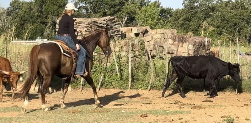 ONLINE AUCTION Place your bids at www.PlatinumEquineAuction.com Starting Bid $3500 Auction ends September 1st, 2024 Need a new saddle? Check out White Rock Saddles on our website or Facebook! “Dump truck” is a 14.3H, 2013’ AQHA chestnut gelding. This one does it all, watch his whole video!! From the ranch, to the roping pen, to the McDonald’s drive through, to the street and even INSIDE Tractor Supply, this guy will keep you absolutely safe! Dump Truck is one of the most versatile horses we’ve come across! He’s very gentled natured, easy to get along with, FANCY broke with all the buttons and SANE! He affectionately got his name from the a team roper who thought he dropped his booty like a dump truck…..and it sure fits him! He is a finished high number heel horse and has been hauled to a handful of jackpots recently. For the past few years, he was owned by an older gentleman who unfortunately passed away. He is safe and gentle for anyone to handle and he can go from the trails, to town, to the roping pen and not skip a beat. He’s not spooky and has ZERO buck, bolt or rear. Dump Truck has a very sweet, kind personality and gets along with everyone and everything! He is an easy hauler, loader, tier, and just plain easy to get along with in general with everything! He’s seen it all, even the inside of Tractor Supply and he acted like it was his 100th trip to the store for his favorite feed. He’s very handy broke and neck reins, moves off leg and stops with absolute ease. He picks up both leads great and will not switch gaits unless asked! Dump truck would excel for any higher number heeler, trail rider, rancher, handy kid or anyone just looking for an absolute fun one to enjoy! We also think he would make a jam up little barrel horse and we may experiment with that, so watch our website for those videos!! He would quickly make a breakaway horse and if patterned, he’d be the perfect junior rodeo horse! He would also make a sorting horse easily! Dump truck has TONS of heart and try! He LOVES to go to work and make you happy! He’s UTD on feet, coggins and teeth and ready to go! If you’re looking for a safe, honest absolute BLAST of a horse to ride, DO NOT miss Dump Truck!!! Dump Truck is a registered AQHA gelding! He will be selling WITHOUT his papers due to his previous owner’s passing and them being lost! The only way for a buyer to have papers in hand is to send in DNA after purchasing!! Papers are not guaranteed! His pedigree is listed in the pictures on our website, and he has been confirmed by previous family to be the horse shown on the pedigree! Go to his website page https://www.northtexashorsecompany.com/selectauctionhorses/dumptruck for more pictures and footage! Please call Blair with North Texas Horse Company for more info at 817-757-3046. We are located in Weatherford, TX and can help arrange affordable shipping to anyone!! ONLINE AUCTION Place your bids at www.PlatinumEquineAuction.com Starting Bid $3500 Auction ends September 1st, 2024 Need a new saddle? Check out White Rock Saddles on our website or Facebook!