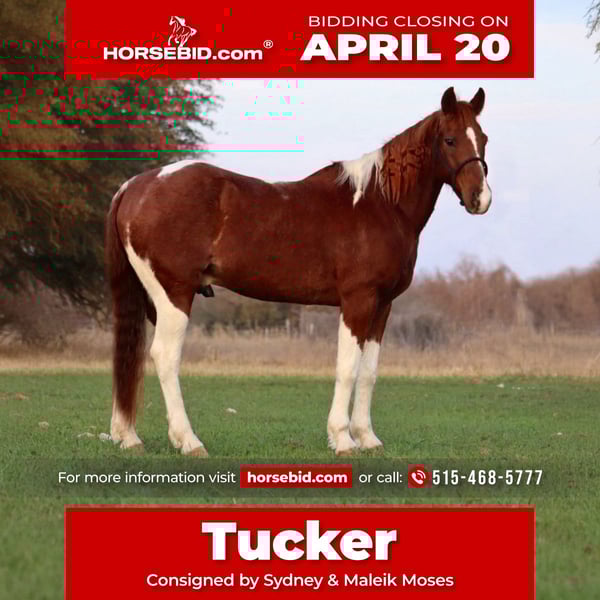 ⚜️𝐭𝐡𝐞 𝓔𝓵𝓲𝓽𝓮 𝐒𝐩𝐫𝐢𝐧𝐠 𝐂𝐥𝐚𝐬𝐬𝐢𝐜⚜️ Happening now thru MONDAY | APRIL 20th - Available EXCLUSIVELY on HorseBid's website! For more details and to register visit: www.Horsebid.com CONSIGNOR CONTACT: Sydney & Maleik Moses 515-468-5777 LOCATION: Stephenville, TX BREED: Quarter Horse REGISTERED: No COLOR: Sorrel and white paint HEIGHT: 15 AGE: 14 GENDER: Gelding Tucker, 14 year old gelding, is a seasoned performance horse finished in breakaway, heading, heeling, and calf roping. He’s a big-motor horse who knows his job and will not be outrun — perfect for high school, college, amateur, or jackpot riders looking to hit the pay window. He can get fired up in the box if running multiple runs without scoring, but he thrives on the challenge and loves his work. With proper, soft handling, he’s a powerhouse in the arena. Tucker hauls and travels like a pro — eats, drinks, and handles the road with ease. He’s also versatile on the ground: loads, leads, ties, ponies colts, picks up his feet easily. And stands well for the farrier. He has a blemish on his right front fetlock, present since he was a baby, which has never affected his performance. Maintenance is minimal — hocks and coffins have been injected and he’s ready to go. This is a horse for someone who wants a talented, seasoned competitor that can consistently deliver in the arena.