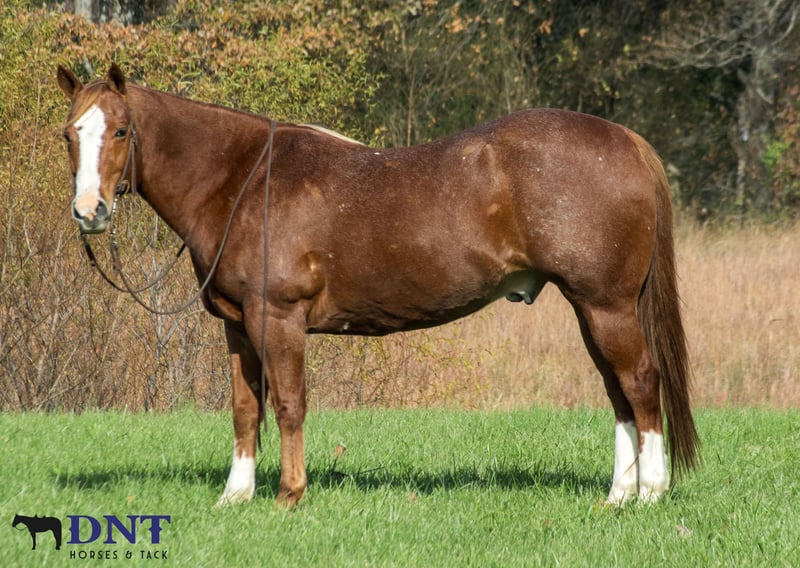 ⚜️ 𝓽𝓱𝓮 𝐇𝐨𝐫𝐬𝐞𝐦𝐚𝐧'𝐬 𝓢𝓱𝓸𝔀𝓬𝓪𝓼𝓮⚜️ Happening now thru MONDAY | DECEMBER 1st - Available EXCLUSIVELY on HorseBid's website! For more details and to register visit: www.Horsebid.com CONSIGNOR CONTACT: DNT Horses 270-844-2400 LOCATION: Henderson, KY BREED: Quarter Horse REGISTERED: No REGISTERED NAME: Cody COLOR: Chestnut Red Roan HEIGHT: 14.2 AGE: 13 GENDER: Gelding CODY WILL SELL COMPLETELY UNRESERVED TO THE HIGHEST BIDDER AT SALE TIME!!! DON’T MISS OUT ON THIS EXCEPTIONAL GELDING!!! Cody is a gorgeous 13 year old grade chestnut roan gelding. Along with his cuteness, he is the perfect height standing at 14.2 hands tall and all the shape you could want. Cody isn't just an eye catcher he is broke for any level rider. Cody will walk all day if asked. He has a nice cowboy trot to him and transitions to a nice lope. He neck reins with one hand or you can ride him two handed, responsive to leg cues, backs and stopd when asked. He is out standing on the trails and has been trail ridden extensively through many different types of terrain. He is sure footed and honest. Cody is not spooky and will cross creeks, go through any body type of water, thick brush, logs, bridges, rough terrain, up and down cliffs with ease. He has been rode on the road and is use to all kinds of traffic, heavy machinery and ATV’s. He is also dog safe. You can ride Cody out alone with ease or with other horses. He's also been used to sort and pen cattle in the fields as well as taken to local cattle sorting. Cody will stand still for you to get on him from the ground or a mounting block. He stands to be groomed, fly spray, stands still to be saddled, takes the bridle with ease, bathes good, loads like a dream, clips great, and stands for the farrier. UTD on vaccines, coggins and farrier. We invite anyone and everyone to come meet and ride Cody at our barn in Henderson, Kentucky. We are happy to assist with transportation arrangements. For any questions about Cody please contact Tasha 270-844-2400