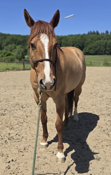 I am looking for a new, loving home for my Quarter Horse gelding "Yankee." This is not an urgent sale, and he will not be sold as a school horse. It is important to me that Yankee goes to experienced and empathetic hands. Profile * Name: Yankee * Breed: Quarter Horse * Gender: Gelding * Age: 14 years * Height: approx. 1.60 m * Papers: available, registered with the American Quarter Horse Association (AQHA) * Training: Reining * Health: healthy, coughs occasionally in winter, hooves are in good condition * Equipment: by arrangement * Location: near Darmstadt (Hesse) About Yankee: Yankee is a sensitive, good-natured gelding with a solid Reining education. I have primarily ridden him in the countryside over the past 5 years. He is very light to ride, loves groundwork, free work, and spending time with his person. Whoever connects with him will get a true heart horse that wants to please and impresses with his gentle nature. In the riding arena, he works well, demonstrates his training, enjoys learning, and likes to have fun. He is ideal for someone who wants to learn more about Western riding. He is not a beginner horse but needs an experienced, calm, and clear handler who can provide him with security. In the countryside, Yankee is well-behaved in the company of another horse. I do not recommend riding out alone with him, as he is a sensitive and somewhat spooky horse that can make quick turns. Important: * Serious inquiries only, please. * A fee of €50 will be charged for test rides, which will of course be deducted from the purchase price. Price expectation: €6,000 negotiable If you feel addressed and are looking for a (second) horse with which you can have fun, learn, and walk the path together – then I look forward to your message.