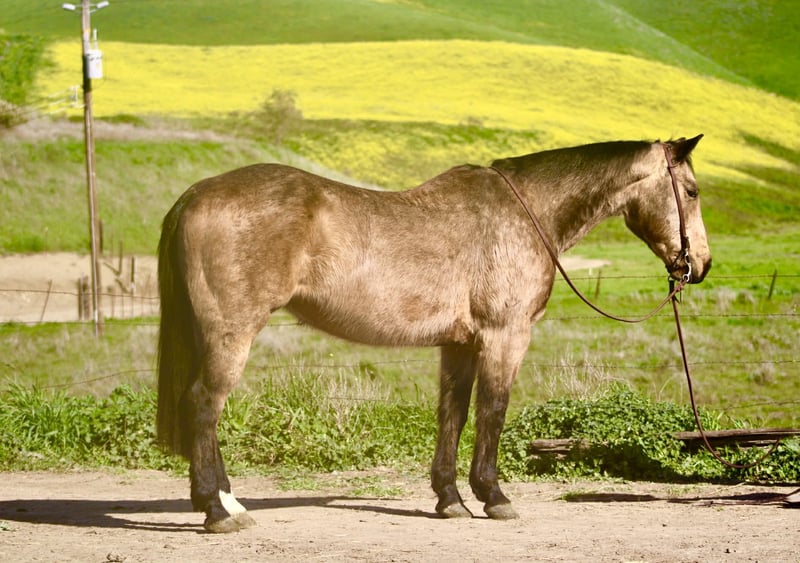 "AVAILABLE ON ONLINE HORSE AUCTION AT www DOT PlatinumEquineAuction DOT com BIDDING OPEN NOW thru SUNDAY | FEBRUARY 15TH! *Final price will be determined on auction site* CONSIGNOR CONTACT INFO: Longhorn Ranch LOCATION: Paicines, CA OSR SHINING PLAYBOY “Playboy” 2012 Buckskin Gelding • AQHA Registered • 15 Hands • Stout Built. If you’re searching for a gelding that combines standout looks, a big heart, and some of the most respected bloodlines in the performance horse world, Playboy is one you need to meet. He is the kind that catches your eye, earns your trust, and keeps it — a horse that’s as enjoyable to own as he is to ride. Bred for talent and longevity, Playboy is sired by OSR Sparks Oak Dunit, a son of the legendary Shining Spark, one of the most influential sires in performance horse history. On the bottom side, he traces to Freckles Playboy, Doc’s Hickory, and Doc Bar — cornerstone names known for producing athletic, trainable, and good-minded horses. These are classic bloodlines you simply don’t see very often anymore, and they continue to prove themselves generation after generation. Playboy is a more laid-back, easygoing gelding that is a pleasure in every setting. Out on the trail, he is a true cruiser — relaxed, confident, and happy to take in the scenery. He has a solid foundation of trail experience and handles a wide variety of terrain with ease. He willingly crosses water, travels through brush, and goes wherever you point him. Playboy has been used for ranch work and is comfortable stepping out to do a job or heading out for a quiet ride. He is great around traffic, wildlife, other ranch animals, and ranch equipment. Playboy has been exposed to obstacles and handles flags, tarps, and other ranch-style obstacles with a quiet mind. In the arena, Playboy has nice style and a smooth way of going. He walks, trots, and lopes easily, carries himself correctly, and offers a soft, comfortable lope. He is responsive, easy to guide, and always aims to please his rider. Playboy ties, clips, and is good for the farrier. He is a confidence-building kind of gelding — steady, sensible, and honest — and one that is safe day in and day out. Beginners can get along well with him, yet he is still quality enough for an experienced rider to appreciate. Built stout with good bone and substance, he feels solid underneath you and ready for anything. Playboy is a rare find — a good-minded, good-moving gelding with timeless bloodlines, a laid-back attitude, and a whole lot of try. Located in California. Shipping can be arranged nationwide. If you would like to find out more about Playboy, please contact: Longhorn Ranch – Dina 831-537-1915