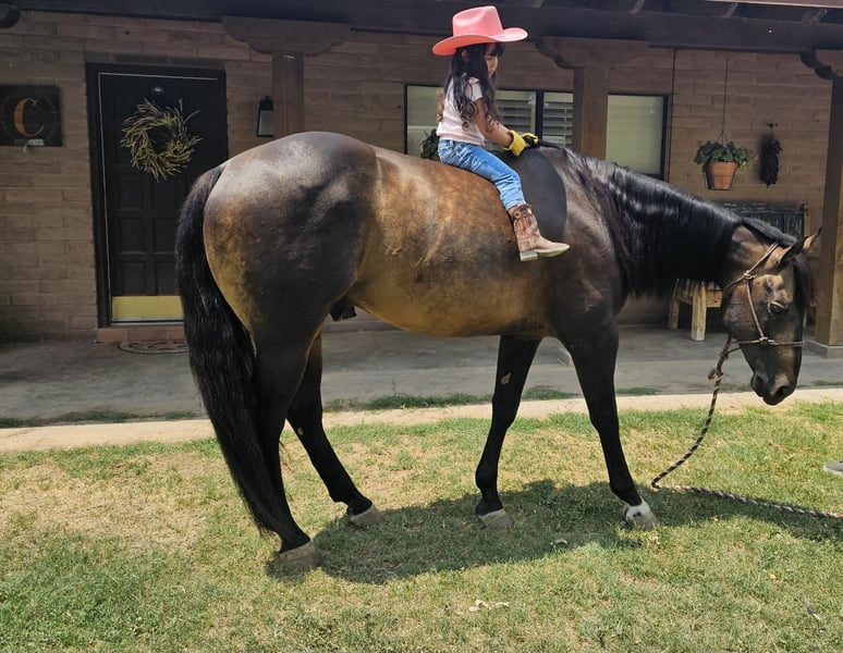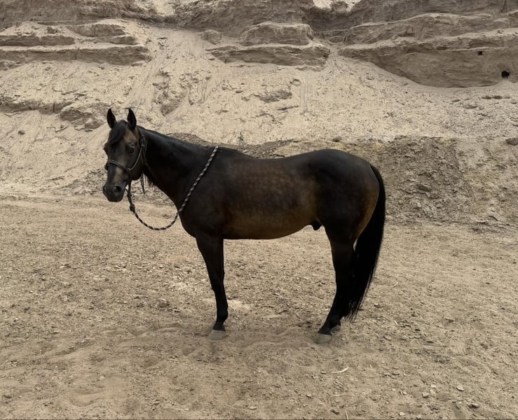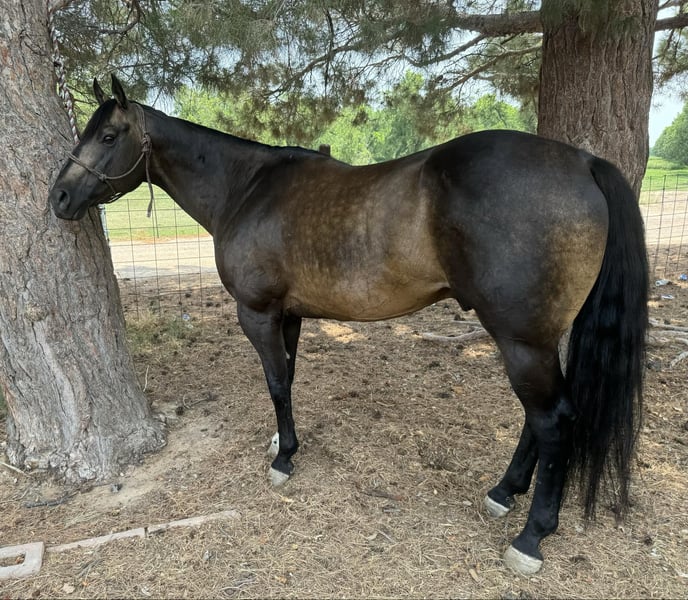 ONLINE AUCTION Place your bids at www.PlatinumEquineAuction.com Starting Bid $3500 Auction ends August 25th, 2024 Need a new saddle? Check out White Rock Saddles on our website or Facebook! Dexter is a 12 yr old sooty buckskin gelding he’s stands 15 h tall and is the prettiest buckskin color you ever seen. He’s been used on the ranch in west Texas in rough country, from pushing cattle from section pastures to bringing steers up in the roping pen. Dexter is easy going nothing really bothers him he’s easy to get along with, we actually pop fire works off of him and shoot a gun as well. He’s been on extreme trail rides from rocky country in the mountains to sandy deserts. We’ve also done a lot of pleasure riding in town around traffic. If your looking for a horse that’s gentle and has the looks here he is you will get noticed everywhere you go. Dexter has done some roping outside on the ranch would make an easy transition to the arena if someone wanted to go that direction with him. He’s been introduced to the smarty and slow steers in the arena. Dexter is easy to shoe has a brand new set. He ties, stands, saddles, bathes and will load and un load any trailer with no problems. He’s straight, clean and 100% sound. Don’t miss Dexter! Located in El Paso, TX. Contact Nathan Martinez 915-474-5453. ONLINE AUCTION Place your bids at www.PlatinumEquineAuction.com Starting Bid $3500 Auction ends August 25th, 2024 Need a new saddle? Check out White Rock Saddles on our website or Facebook!
