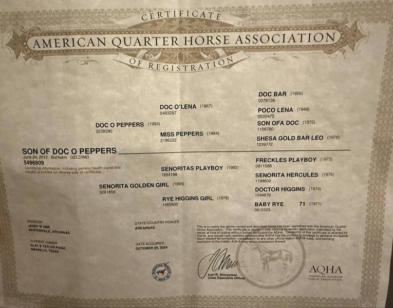 ONLINE AUCTION Place your bids at www.PlatinumEquineAuction.com Starting Bid $3500 Auction ends July 20th 2025 Need a new saddle? Check out White Rock Saddles on our website or Facebook Son Of Doc O Peppers, your next favorite equine partner! This stunning 2012 AQHA registered buckskin gelding stands at a solid 15 hands and is sure to turn heads wherever you go. He’s Americas favorite color and has a charming personality, DR Pepper is not just a pretty face—he’s an incredibly versatile ranch horse who knows the ropes! From roping and doctoring sick cattle to gathering and loading trucks, DR Pepper has done it all. He’s extremely well-trained and cowy making him a reliable partner in any ranching task. Plus, he’s been in the cutting pen, turning back cattle, and has plenty of experience at the sale barn, too. This fancy gelding is one-handed broke and rides beautifully in the bridle. He has smooth transitions, whether you’re in the arena or out on the trails. With a pretty turnaround and a big stop, he’s all about those smooth moves! He can side pass to open and close gates and has confidently navigated ground poles, tarps, and bridges on the trail course. If you’re looking for a horse that excels in ranch riding events, DR Pepper has all the buttons you need to shine in the show pen. He rides out on trails like a champ, effortlessly crossing downed trees and tackling hills—just point him in the right direction, and he’s ready to go! Whether you prefer riding solo or with a group, he’s fine with either. With his impressive pedigree, including being a grandson of the legendary Doc O Lena, DR Pepper comes from a line of proven winners. While he’s ready to impress, I’d recommend him for an intermediate rider who can appreciate just how fancy broke he truly is with all his buttons. If you’re ready to add a talented and reliable partner to your team, look no further than Dr Pepper He’s waiting to help you tackle any job you throw his way. We are open to anyone interested in him to schedule a time to come see him or if you can’t make it schedule a FaceTime showing to see him. If you need help with transport don’t hesitate to ask we have a list of reputable haulers that can get him safely to your doorstep WORLD WIDE including, Alaska , Mexico, Hawaii, Canada and anywhere in between from Stephenville, TX. Contact M$ Performance Horses Michelle 661-817-9120. ONLINE AUCTION Place your bids at www.PlatinumEquineAuction.com Starting Bid $3500 Auction ends July 20th 2025 Need a new saddle? Check out White Rock Saddles on our website or Facebook