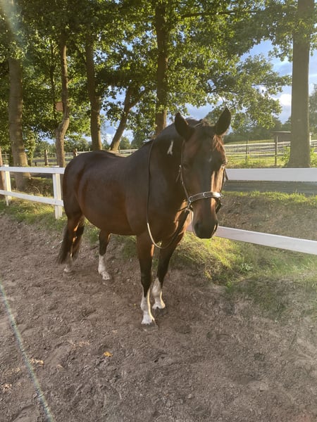 Schweren Herzens trenne ich mich aus Zeitgründen von meinem 13 jährigen (2012 geb.) Quarter Mix Wallach. Er ist 1,53m groß. In den letzten Jahren stand er 24/7 im Offenstall, was für mich auch in der Zukunft eine wichtige Grundlage ist. Wenn du gerade keine Möglichkeit hast, ihn den ganzen Tag in den Offenstall zu stellen, wäre sicherlich auch vorstellbar, dass er nachts in einer Box steht, wenn es ansonsten gut passt. Mir ist am wichtigsten, dass er in gute Hände kommt. Er wurde in der Vergangenheit regelmäßig vom Boden gearbeitet, ist ein solides E Niveau unterm Sattel gelaufen und war auch häufig im Gelände unterwegs- in der Gruppe sowie allein. Er ist seit 2020 in meinem Besitz. Leider musste er aufgrund einer Verletzung eine längere Pause einlegen und wurde danach nicht mehr wirklich angeschoben. Mit ausreichend Zeit und dem richtigen Training ist es sicherlich in der Zukunft möglich, ihn wieder zu reiten. Momentan mache ich mit ihm viel klassische Handarbeit und Spaziergänge. Da er sehr leichtfuttrig ist, braucht er eine kontrollierte Heufütterung, damit die Pfunde wieder purzeln ;). Dazu gehört auch, dass er nicht auf die Weide kann und ein gut befestigtes Paddock braucht. Ich wünsche mir für ihn einen liebevollen und geduldigen Menschen, der sein Pferd als gleichwertigen Partner betrachtet. Er ist für einen entspannten Freizeitreiter geeignet, der Lust hat, ihn zu betüddeln und einfach eine schöne Zeit mit ihm verbringt. Deswegen gilt definitiv auch Platz vor Preis. Er steht momentan im Süden Oldenburgs. Ich freue mich sehr auf eine Nachricht von dir, für Fragen stehe ich natürlich jederzeit zur Verfügung☺️.