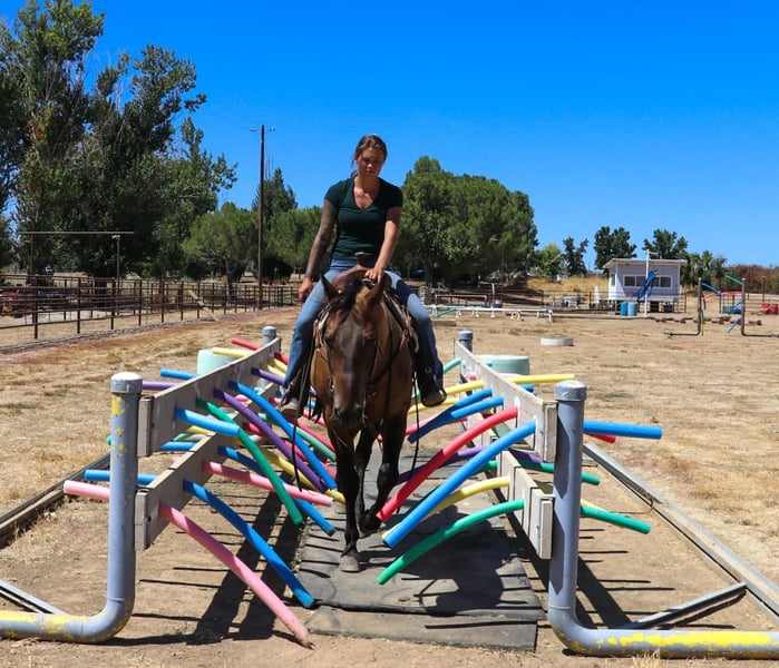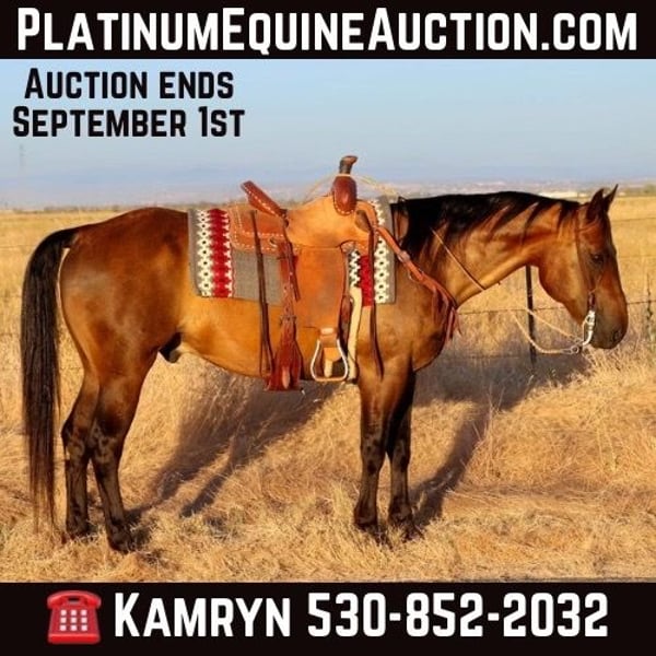 ONLINE AUCTION Place your bids at www.PlatinumEquineAuction.com Starting Bid $3500 Auction ends September 1st, 2024 Need a new saddle? Check out White Rock Saddles on our website or Facebook! Meet Bacon: The Perfect Blend of Beauty and Brains in a 12 year old 15.1 hands sooty buckskin gelding! Are you in search of a horse that combines stunning looks with an exceptional temperament? Look no further! Bacon is a magnificent equine that will not only turn heads with his striking appearance but will also impress you with his intelligence and versatility. This remarkable horse has been a reliable partner in a variety of settings and is ready to bring joy and adventure to his new owner. Bacon is an absolute gentleman on the trails. He is as sure-footed as they come, confidently navigating through any terrain you can imagine. Whether you’re traversing muddy paths, crossing creeks, splashing through ponds, or tackling rocky landscapes, Bacon handles it all with ease. He goes up and down hills effortlessly, making him the perfect trail companion for any rider. Plus, he has a genuine love for playing in the water, making every trail ride an adventure. In the arena, Bacon is a true expert. He knows his leads, has a fantastic stop, and offers a smooth, easy trot that makes riding a pleasure. He has the slowest smoothest lope you could want a big horse to have. Bacon also packs his head very low and he collects up in the bridle and rides in a bridle. He could excel really well in some shows as well with his easy going nature and how broke he is. Whether you’re practicing for a competition or just enjoying a leisurely ride, Bacons responsiveness and skill make him an excellent partner. His familiarity with obstacles like teeter totter bridges, pool noodles, cow hides, hoola hoops, waterfalls means he remains calm and composed. Bacon has been exposed to an array of environments and situations, making him incredibly adaptable. He’s accustomed to the hustle and bustle of heavy equipment, dogs, quads, dirt bikes, and bikes. Traffic, honking horns, and even the roar of semi-trucks do not phase him. Bacon has been ridden through city streets and neighborhoods, calmly handling rushing cars, curious pedestrians, and kids playing basketball. His nature makes him an excellent choice for riders who want to explore both rural and urban settings. Bacon has a special fondness for children and loves the attention they give him. He is a perfect gentleman around kids, making him an ideal family horse. His patient and gentle demeanor ensures that even the youngest riders can take him for a spin. He’s been used for lessons and handles them with grace. Badger is as easy-going as they come. His “in your pocket” personality means he loves to be around people and enjoys being loved on. He’s a joy to ride and be around, making every moment spent with him a pleasure. Whether you’re a seasoned rider or a novice, Bacon’s sweet nature and cooperative spirit make him an ideal companion. He is also UTD on shoes, worming, shots and in shape and ready to hit those trails. He loads in a trailer with ease, stands tied, goes alone or in a group, stands to be saddled, bathed, fly sprayed, for farrier. Stall or pasture, he’s easy to catch as well and the will meet you at the gate. Bacon is a rare find – a horse that combines beauty, brains, and an exceptional temperament. His versatility and reliability in a wide range of settings make him a standout choice for anyone looking for a truly special equine partner. Don’t miss the opportunity to make Bacon a part of your life. Contact KW Ranch Kamryn 530-852-2032 to meet this extraordinary horse we call Bacon! Located in Pleasant Grove, CA. ONLINE AUCTION Place your bids at www.PlatinumEquineAuction.com Starting Bid $3500 Auction ends September 1st, 2024 Need a new saddle? Check out White Rock Saddles on our website or Facebook!