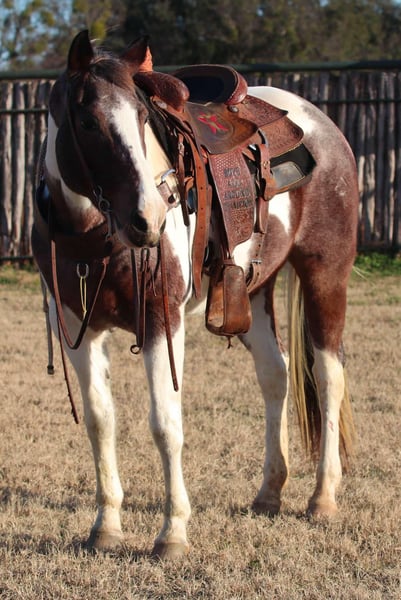 ONLINE AUCTION Place your bids at www.PlatinumEquineAuction.com Starting Bid $3500 Auction ends March 2nd, 2025 Need a new saddle? Check out White Rock Saddles on our website or Facebook! Miss Pie is an 13 year old grade mare. She stands at 15.1hh tall. She has the most precious face with the prettiest, gentle and kind eye. This sweet mare has been used for almost anything you can think of. She is an excellent trail horse! She will gladly climb up or down anything that you point her nose towards. Pie will happily go through any body of water without missing a beat. Pie is not spooky on the trails and can handle any situation that you might encounter, whether that be wildlife, fallen trees, ditches, or treacherous terrain. She is a great leader, but also has no issues falling behind in the back if you want her too. She is calm and sure footed! Pie has been hauled out to town and to rodeos with many distractions and crowds! Pie is a breeze to catch and will come up to you anytime she sees you at the gate. She will load in any trailer without any fuss. Pie is the perfect addition to any barn. He has such a sweet disposition and loves attention and affection. Located in Lipan, TX. We can help arrange hauling anywhere in the US, Hawaii or Canada! Please call or text Makenna Cosby 830-491-8866. ONLINE AUCTION Place your bids at www.PlatinumEquineAuction.com Starting Bid $3500 Auction ends March 2nd, 2025 Need a new saddle? Check out White Rock Saddles on our website or Facebook!