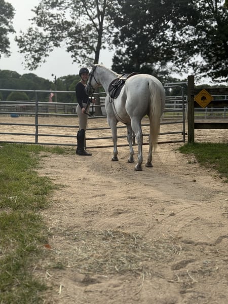 AVAILABLE ON ONLINE HORSE AUCTION AT www DOT MagicHorseAuction DOT com BIDDING OPEN NOW thru TUESDAY | November 11TH! - BUY IT NOW AVAILABLE! *Final price will be determined on auction site* CONSIGNOR CONTACT INFO: Wayne Dougal 631-766-3007 LOCATION: Islip, NY Spud STYLISH BOON BAR aka Spud AQHA 2012 model grey Gelding Standing at 15.3 a solid 1300 lbs If you're looking for the ultimate all-around partner-solid, sound, and seriously broke-look no further than Spud. Spud is built to last, he’s got the bone, the brain, and the breeding to go any direction. Bred to Perform Spud carries legendary bloodlines including Doc O Lena, Tanquery Gin, Peppy San Badger, and Docs Stylish Oak. His pedigree is packed with cow sense and versatility, and it shows in everything he does. Your Next Ranch/Trail Deluxe * Trail Master: opens gates , Crosses water, bridges, traffic-safe, and confident out alone or in a group * All-Day Workhorse: Will pen, sort, rope, and work a cow-knows what a real day's work looks like * English & Western Broke: Rides soft and correct both ways, great transitions, * Push-Style: anyone can ride, yet talented enough for the advanced hand * Obstacle-Ready: Will jump, open gates, and even fox hunt Bonus Features Spud Plays soccer! That's right-Spud is a hoofball champion with the buckle to prove it! * Huge stop, nice turnaround, solid backup * Loads , ties , stands likes gentleman * Stands quietly to mount/dismount * Easy keeper with no maintenance * Teeth done, front shoes, 100% sound and ready to go to work tomorrow * A Gentleman Through and Through Spud is respectful, willing, and always waiting for your cue. He's been there, done that, and is still gentle at the end of a long day. Whether you need a dependable ranch hand, a solid trail horse, or a fun, versatile mount, Spud checks all the boxes. ° Located on Long Island, New York