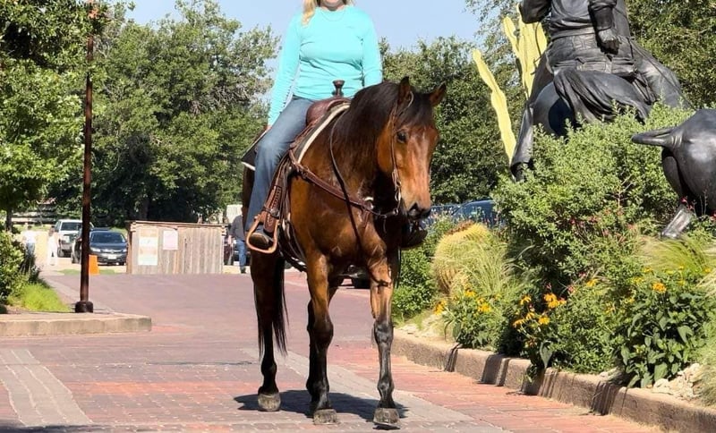 ONLINE AUCTION Place your bids at www.PlatinumEquineAuction.com Starting Bid $3500 Auction ends November 24th, 2024 Need a new saddle? Check out White Rock Saddles on our website or Facebook! Bo is a 12 yr old, 16H bay quarter horse gelding. The phrase built like a brick house, started when they saw this gelding. Bo is as stout as they come but he has the softest personality. He is an extremely GENTLE giant and is suitable for all ages and abilities! He was used on a ranch years ago and since he’s just been an old lady’s trail horse. Bo has a nice handle to him and is definitely broke like a fancy one should be. He neck reins with ease and moves off leg beautifully. He opens/closes gates and would be a trail riders dream! He takes to all new situations with ease. He has ZERO buck, bolt, spook or rear and tackles any obstacles he encounters. Bo crosses water, railroad tracks, loud echoey bridges and is absolutely traffic safe! He is incredibly easy to ride and anyone that can hold the reins can ride this guy! We can’t say one negative thing about him, if you’re looking for a no brainer, beer drinking, kick back and relax type horse, you absolutely don’t want to miss Bo! He loads, leads, bathes and ties great. He has the best, lovable personality and will surely become someone new best friend the minute they meet him. Go to his website page northtexashorsecompany.com/bo for more pictures and footage! Please call Blair with North Texas Horse Company for more info at 817-757-3046. We LOVE to talk about him! We are located in Weatherford, TX and can help arrange affordable shipping to anyone!! ONLINE AUCTION Place your bids at www.PlatinumEquineAuction.com Starting Bid $3500 Auction ends November 24th, 2024 Need a new saddle? Check out White Rock Saddles on our website or Facebook!