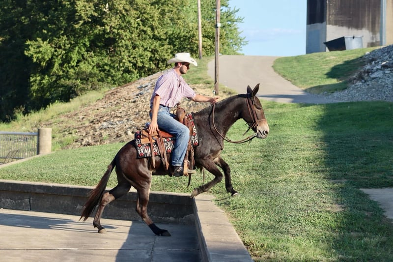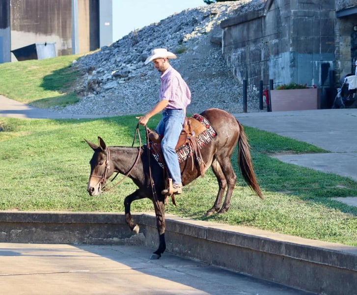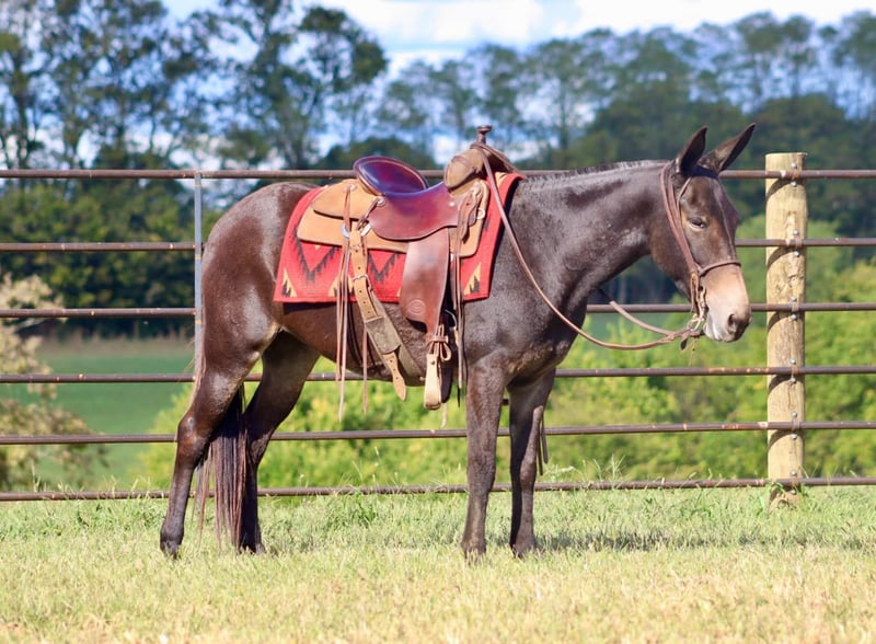 ONLINE AUCTION Place your bids at www.PlatinumEquineAuction.com Starting Bid $3500 Auction ends October 6th, 2024 Need a new saddle? Check out White Rock Saddles on our website or Facebook! Juli is a 14.1 hand 12 year old Molly mule. She is a ride and pack mule that loves the trails. Juli has lots of miles in the deep south trail riding. She’s also been a hog and coon hunting mule. She is good with the hounds and rides at night with no problems. She’s packed out coons and squirrels with no problems. Juli has been on overnight camping trips and ties out on the high line with no problems. She loads and hauls well. She does the best following or being in the middle of the pack, but she will lead if you need her to. She rides out alone as well. She’s good to check cattle. Handles her feet and ears nicely. Juli is just an all around good, using type of mule. For more information, call Brookside Horses Tucker 606-782-6054 Located in Brooksville, KY. ONLINE AUCTION Place your bids at www.PlatinumEquineAuction.com Starting Bid $3500 Auction ends October 6th, 2024 Need a new saddle? Check out White Rock Saddles on our website or Facebook!