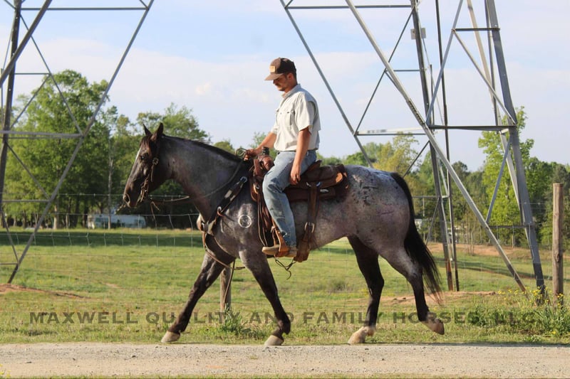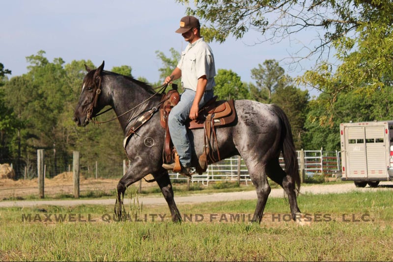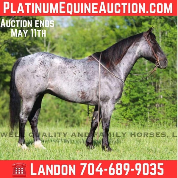 ONLINE AUCTION Place your bids at www.PlatinumEquineAuction.com Starting Bid $3500 Auction ends May 11th, 2025 Need a new saddle? Check out White Rock Saddles on our website or Facebook! Tupac is a grade quarter horse gelding standing 15.1. He is 13 years old and as broke as they come. Horses like Tupac are hard to come by this safe, gentle, handy broke, and a solid 15.1 hands. He has a great personality that anyone can get along with and handle both on the ground and in the saddle. He is broke to ranch work, has an excellent neck rein and crosses his feet the right way when maneuvering in every direction. Tupac is easy to catch, loads easily and is a good boy with his feet as well. He’s quiet on the trails and crosses all you point him to. Chex’s walk/trot/canter is smooth as butter every time, just check him out in the video. We’ve used him to halter break weanlings and catch a few escapees and he handles pressure with ease. He can get up and go when asked and drops his head and goes back to slow as soon as you ask. Great manners in the stall as well as the pasture with both mares and other geldings. There’s truly nothing we’ve thrown at him he doesn’t excel in. Tupac is as close to perfect as they come. Located in Cherryville, NC; can deliver nationwide. He sells 100% sound and safe for anyone to ride. Contact Landon with Maxwell Family Horses 704-689-9035, ONLINE AUCTION Place your bids at www.PlatinumEquineAuction.com Starting Bid $3500 Auction ends May 11th, 2025 Need a new saddle? Check out White Rock Saddles on our website or Facebook!