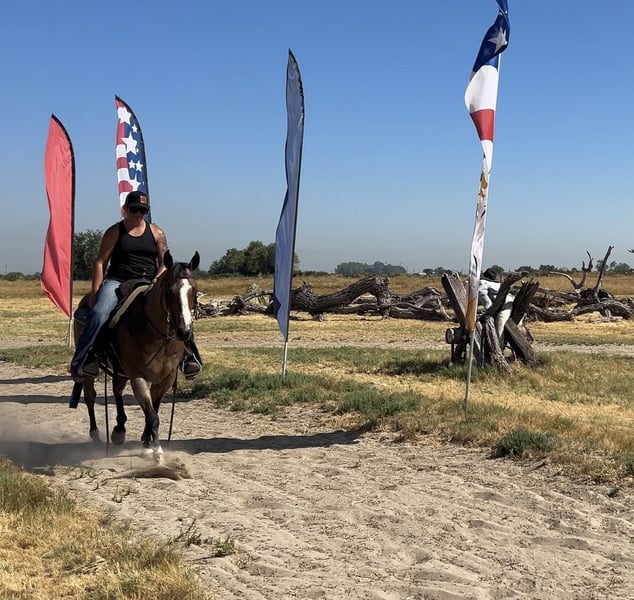 ONLINE AUCTION Place your bids at www.PlatinumEquineAuction.com Starting Bid $3500 Auction ends July 21st, 2024 Need a new saddle? Check out White Rock Saddles on our website or Facebook! If you’re looking for the perfect package, good mind, color, and loving a.j is your boy! A.j is a 13yo grade gelding standing 14hh with a nice thick build. He has great conformation, nice hip on him, short neck, soft kind eyes, and shiny coat. If you want something you will get attention on this is the one! A.j is solid on the trail, he has been hauled out extensively, he makes hauling a dream. Load easy, stands tied. Park to grab a bite to eat and he’s a happy camper waiting for you to get moving to your next destination, doesn’t matter if he’s alone or with a buddy. I’ve hauled him a couple hours, unloaded and hit a trail course he’s never seen. He takes to anything with ease. Crosses steep bridges, tarps, flags, teetering bridges, pool noodles, tires, logs, down in ditches you name it. He is a more forward mover. Saddles with ease, takes the bit, again stands tied, loves to be brushed. Good with fly spray, water. This horse wants all the attention in the world. He will stand there for hours if it means he gets loved on. First to greet you. Easy to catch. Good with others. Easy keeper. He has a full set of shoes on, my terrain is rough! A.j is also a breeze in the arena. Picks up both leads, walk trot lope, stops, backs, turns around good. Absolutely no mean bone in his body. Whatever you want to do he is happy with. If he’s unsure of something you ask him to do it and he does. He does have a short tail, although I don’t like to show it off, it is still cute, it’s full just needs to grow! While I’m picking apart his looks he did somehow chip his two front teeth they’ve been like that since I got him. Does not in any way affect his eating or anything else in any way. He prefers if you just tell him he’s pretty and not remind him. A.j truly is nothing but a pleasure to have around. He will fit into anyone’s family just fine. I have no doubt you will love him just as much as I do. Located in Valley Springs, CA. please feel free to contact me with any questions. Breeanna Frazier 925-783-8655. ONLINE AUCTION Place your bids at www.PlatinumEquineAuction.com Starting Bid $3500 Auction ends July 21st, 2024 Need a new saddle? Check out White Rock Saddles on our website or Facebook!