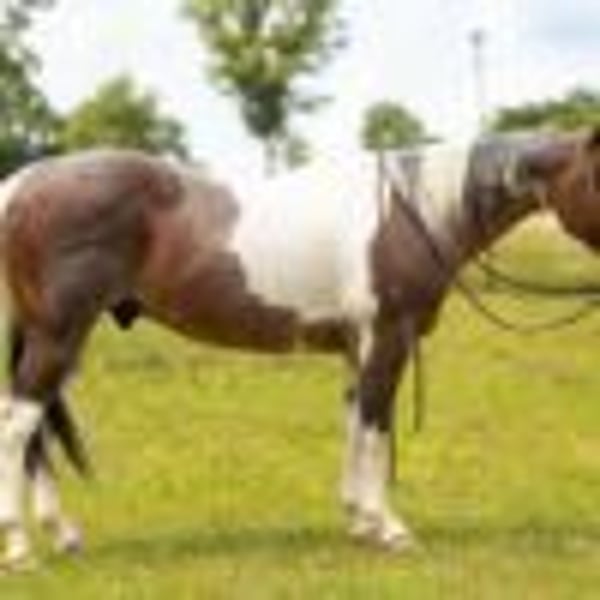 ONLINE AUCTION Place your bids at www.PlatinumEquineAuction.com Starting Bid $3500 Auction ends June 29th, 2025 Need a new saddle? Check out White Rock Saddles on our website or Facebook! Being offered for your consideration is Banks, a 14.2h, 14-year-old bay roan paint gelding with a wealth of real-world experience and a quiet, dependable disposition. This gelding is an ideal candidate for anyone in need of a seasoned, all-around mount who is both willing and capable in a wide range of environments. Banks has been extensively used in a working cattle setting, including time at the sale barn where he has reliably sorted, pinned, and loaded cattle. He is no stranger to pressure and commotion, and he handles both with calm professionalism. In addition, he has been ridden at wagon races and exposed to high-energy events, taking it all in stride without becoming reactive or unsettled. Under saddle, Banks is confident, sure-footed, and smooth. He will go out alone or with a group, crosses water, navigates rough terrain, and handles obstacles with ease. He has been ridden through town, where he has encountered traffic, dogs, bicycles, and other typical urban distractions. Banks remains composed and attentive throughout. He is also comfortable being ridden bareback or double, further showcasing his gentle nature and versatility. On the ground, Banks is easy to catch, saddle, bridle, bathe, and load. He stands quietly for grooming and farrier work and has excellent manners in the barn and trailer. Banks is the kind of horse that brings peace of mind—whether you’re heading out for a long day of work, a quiet evening ride, or anything in between. If you’re looking for a reliable, seasoned gelding with a calm presence, Banks deserves your consideration. Located in Quitman, AR. Contact Diamond L Horses Cole 479-747-3179 with any questions. ONLINE AUCTION Place your bids at www.PlatinumEquineAuction.com Starting Bid $3500 Auction ends June 29th, 2025 Need a new saddle? Check out White Rock Saddles on our website or Facebook!