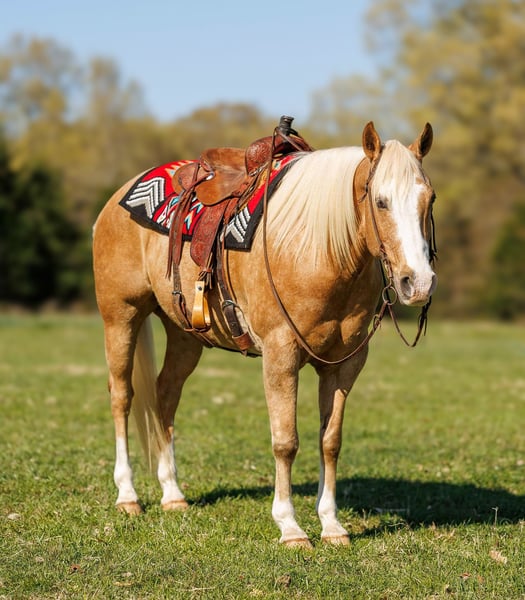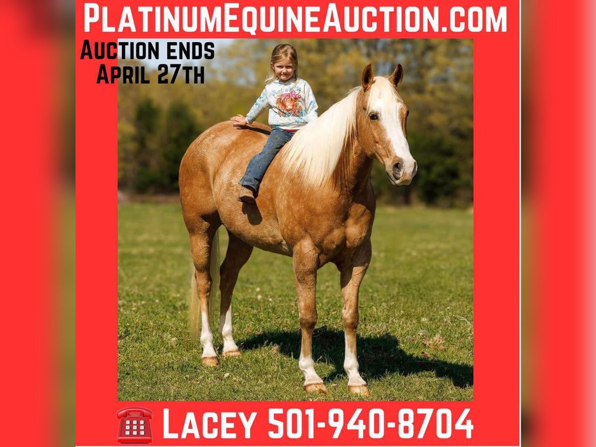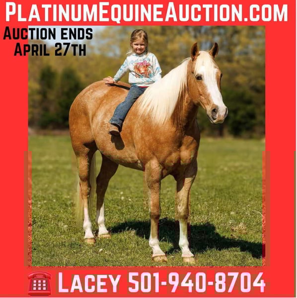 ONLINE AUCTION Place your bids at www.PlatinumEquineAuction.com Starting Bid $3500 Auction ends April 27th, 2025 Need a new saddle? Check out White Rock Saddles on our website or Facebook! Ahh Hezalot Of Cash They say blondes have more fun, well that couldn’t be more true because this palomino gelding is a blast! We call this classy ride Taxi. Standing 15.1 hands, this 14 year old registered AQHA gelding is the true definition of “the perfect package”. He has chrome, shape, substance and a fantastic disposition! He is the ideal size to tote any rider big or small and has a genuine “heart of gold”. Taxi has a great personality with impeccable ground manners and absolutely loves each and every individual he meets. He is a phenomenal trail partner and is not fazed by creeks, logs, ditches, wildlife or any other obstacles you may encounter. Taxi has been to town, seen the bright lights, and experienced most all situations. He has a rocking-chair lope and the most comfortable jog. It doesn’t take a professional to ride Taxi, he respects the bridle well with a one-hand neck rein and responds to leg cues with ease. He has seen all aspects of ranch work and is no stranger to a cow. Taxi has been used to push, gather, sort, and load cattle. He has a fancy handle with a naturally low headset, big sliding stop and flawless roll-back. He is the first to meet you at the gate and is a dream to groom, saddle, bath, clip, load, and shoe. I cannot say enough good things about this gelding, he is truly a joy to own and ride! If a one in a million unicorn is what you’re looking for then Taxi is your guy! Watch his full Youtube video, feel free to reach out with any questions, and arrange a visit or a FaceTime with Taxi! For more info contact Lacey Wilf 501-940-8704 Located in Quitman, AR, we can arrange shipping to any state. ONLINE AUCTION Place your bids at www.PlatinumEquineAuction.com Starting Bid $3500 Auction ends April 27th, 2025 Need a new saddle? Check out White Rock Saddles on our website or Facebook!