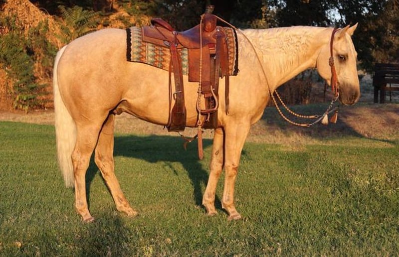 ONLINE AUCTION Place your bids at www.PlatinumEquineAuction.com Starting Bid $3500 Auction ends October 20th, 2024 Need a new saddle? Check out White Rock Saddles on our website or Facebook! Meet ShinersTopSailinWhiz aka Cody, a 15.1H, 2011 model registered AQHA palomino gelding who is the perfect blend of versatility, training, and reliability. Sired by a Shining Spark stud and out of a West Coast Whiz mare, Cody is a top-quality horse ready to excel in a variety of disciplines. Cody is trained and used for branding calves, doctoring sick cattle, and sorting cattle. His experience in these tasks makes him a dependable partner on the ranch. He is also patterned on barrels and has competed in local jackpots. Cody is a competitive horse in any event. Currently being patterned on poles, Cody shows promise as a gymkhana horse and could excel in various gymkhana events. With all the miles outside, Cody is adept at gathering large pastures and navigating mountainous terrain, making him an excellent choice for trail work and diverse riding environments… Cody is truly broke in the bridle, providing a responsive and controlled ride. His training reflects his versatility and willingness to perform. Known for his work horse nature, Cody is a reliable horse that adapts well to different riding situations and disciplines. Cody is a well-rounded gelding with the training and experience to suit a variety of needs. Whether you’re looking for a reliable ranch horse, a competitive barrel racer, or a promising gymkhana prospect, Cody is ready to take on new challenges. Don’t miss out on this exceptional opportunity. Located in Turlock, CA. Contact Bailey Williams 209-841-9048 with any questions. ONLINE AUCTION Place your bids at www.PlatinumEquineAuction.com Starting Bid $3500 Auction ends October 20th, 2024 Need a new saddle? Check out White Rock Saddles on our website or Facebook!
