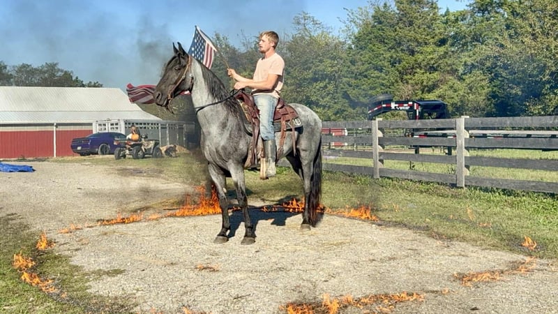 ONLINE AUCTION Place your bids at www.PlatinumEquineAuction.com Starting Bid $3500 Auction ends January 11th, 2025 Need a new saddle? Check out White Rock Saddles on our website or Facebook River is a extra handsome classic blue roan gelding, reg twh, 15 year old, he is standing close to 15.2, this is very experienced trail gelding that truly has logged more trail miles than most 2 or 3 horses combined, he has been to countless big trail rides in several states as well trips out alone as well. River is nice correct gelding that knows his job and is fun to ride. He has a smooth gait and is uncomplicated to ride. River is a forward moving horse that likes to gait when ready, he is an easy keeper and maintenance free. River gets along with other horses and is truly a pleasure to have around, he does great turned out or stalled. River not only stands for mounting but will park out on command making him easier to mount. This horse has been there done that and seen the sights. If you want drama free and worry free here he is wrapped in that beautiful blue roan coat! Located in Grassy Creek, KY. For more info contact Zach with Brandenburg Stables 513-508-3684. ONLINE AUCTION Place your bids at www.PlatinumEquineAuction.com Starting Bid $3500 Auction ends January 11th, 2025 Need a new saddle? Check out White Rock Saddles on our website or Facebook