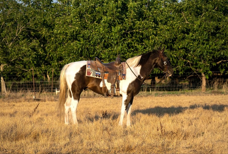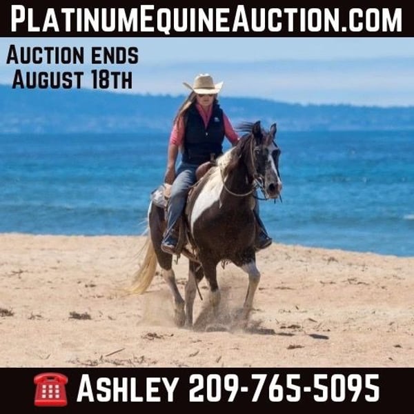 ONLINE AUCTION Place your bids at www.PlatinumEquineAuction.com Starting Bid $3500 Auction ends August 18th, 2024 Need a new saddle? Check out White Rock Saddles on our website or Facebook! Checkers is a 13-year-old black and white paint gelding standing at 15.1 hands. With his gentle demeanor and fun ride, he’s ready for a new adventure! This barefoot gelding is up-to-date on vaccines, dewormer, and farrier work. Checkers excels in a variety of settings: beach, trail, obstacles, and arena. He is adaptable for both western and English disciplines and would shine as a cute hunter/jumper, effortlessly flying over cross rails. He rides well in a junior cow horse bit or a snaffle and handles the bit comfortably, despite a few crooked teeth. He moves off of leg with ease and rides quiet. In the arena, Checkers walks, jogs, and lopes smoothly and has a nice, responsive stop. While he can be a bit anxious when tied to the trailer initially, he quickly settles. He will jump in any trailer you point him at and haul with no issues to new places! He has begun tracking the roping sled and shows significant potential with the right person. Located in Lodi, CA, we offer various transport options. For more information or to arrange a visit, call Ashley O’Brien 209-765-5095. Don’t miss out on this exceptional gelding. ONLINE AUCTION Place your bids at www.PlatinumEquineAuction.com Starting Bid $3500 Auction ends August 18th, 2024 Need a new saddle? Check out White Rock Saddles on our website or Facebook!