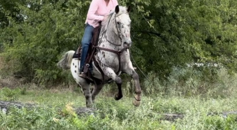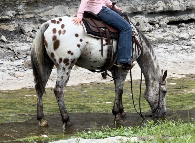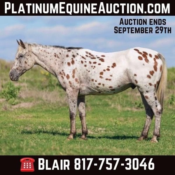 ONLINE AUCTION Place your bids at www.PlatinumEquineAuction.com Starting Bid $3500 Auction ends September 29th, 2024 Need a new saddle? Check out White Rock Saddles on our website or Facebook! “Santo” is a 14.1H, 14 yr old Appaloosa gelding. If you’re looking for the best of the best when it comes to color, safety, ease to handle/ride, personality and gentleness, they just simply don’t come better than Santo. He’s an absolute SAINT the whole family can enjoy. The very smallest babies up to the novice adults will be safe on this guy! He is extremely easy to ride, neck reins perfectly, switches gaits only when asked, stop when he’s told to and has absolutely ZERO buck, bolt, rear or spook. Santo has been with a family full of kids and has done all the things kids can think of on their trusty steed. He’s dabbled in the play day events, seen countless amounts of trails, roped some slow cattle, and even been jumped! He would be the perfect first horse or horse for a kid looking to go have fun with something experienced in practically everything! Santo would also be the perfect trail/pleasure horse for anyone needing a safe, predictable, COMFORTABLE, sure footed, sane mount. Leave him off a day or 6 months and he’s the same horse every time. He is so much fun to ride and will put a smile on anyone’s face that swings a leg over him! He has one of the best people pleasing personalities and is so SWEET!! He loads, leads, stands, and ties great. He’s traffic, car, crane, golf cart, city, Santo is UTD with teeth, feet and coggins and ready to go to his new family! You won’t want to miss this gorgeous gelding that is sure to keep anyone obsessed with going to the barn to ride! Go to his website page northtexashorsecompany.com/santo for more pictures and footage! Please call Blair with North Texas Horse Company for more info at 817-757-3046. We are located in Weatherford, TX and can help arrange affordable shipping to anyone!! ONLINE AUCTION Place your bids at www.PlatinumEquineAuction.com Starting Bid $3500 Auction ends September 29th, 2024 Need a new saddle? Check out White Rock Saddles on our website or Facebook!