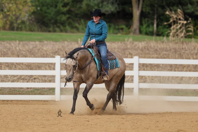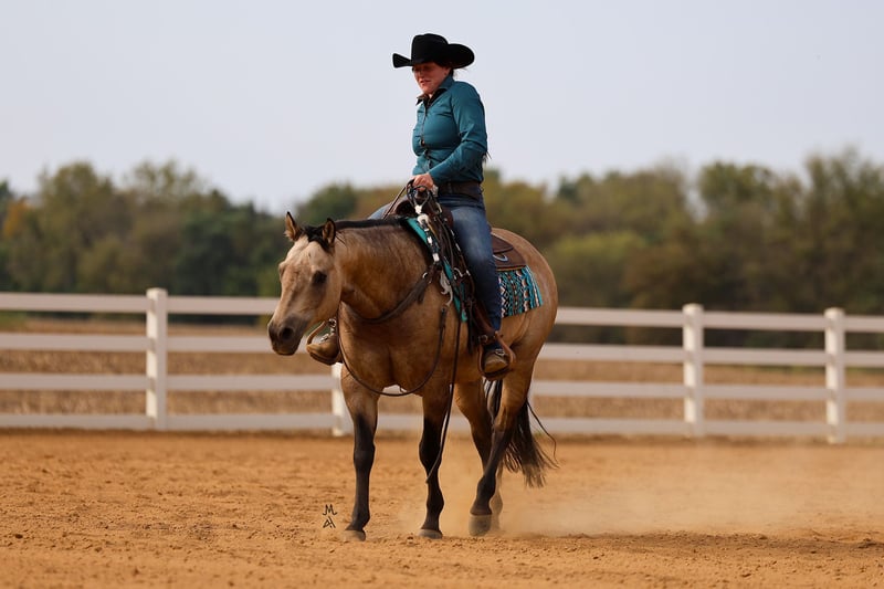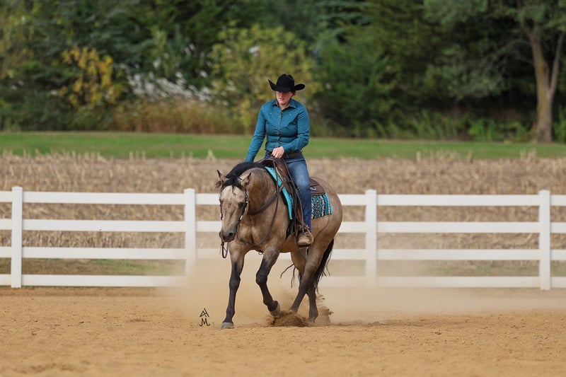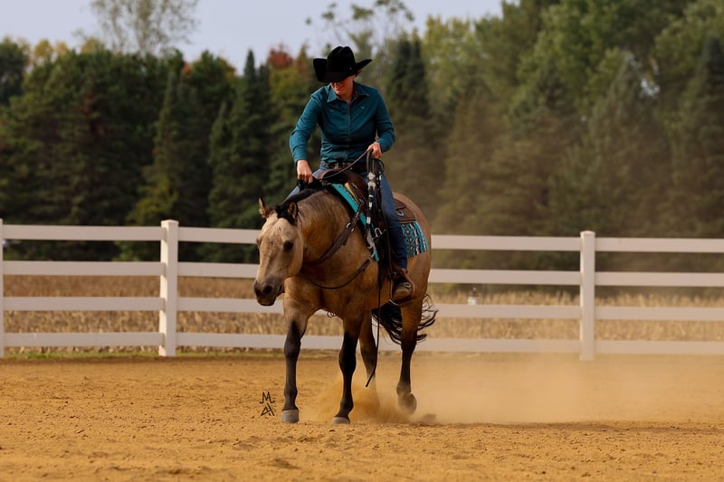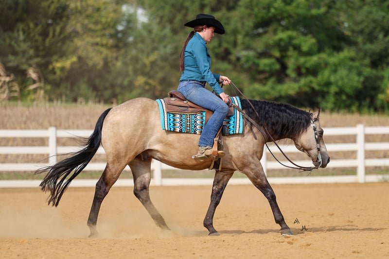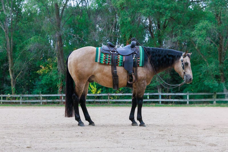 ♦️ 𝐭𝐡𝐞 𝐀𝐌𝐄𝐑𝐈𝐂𝐀𝐍 𝓕𝓪𝓵𝓵 𝓒𝓵𝓪𝓼𝓼𝓲𝓬 ♦️ Happening now thru MONDAY | OCTOBER 20th - Available EXCLUSIVELY on HorseBid's website! For more details and to register visit: www.Horsebid.com CONSIGNOR CONTACT: Michels Performance Horses LLC 574-350-4044 LOCATION: Cottage Grove, MN BREED: AQHA REGISTERED: Yes REGISTERED NAME: Wimpys Flashy Jac COLOR: Buckskin HEIGHT: 14.3 AGE: 15 GENDER: Gelding Meet Wimpys Flashy Jac, affectionately known as Flashy — a stunning dappled buckskin AQHA gelding who stands at 14.3 hands and turns heads everywhere he goes. An own son of the legendary Wimpys Little Step, Flashy boasts an impressive $58,511 in NRHA earnings, proving his natural athleticism, trainability, and heart in the show pen. His elegant color, coupled with his flawless conformation and stylish way of moving, makes him as beautiful to look at as he is to ride. Flashy is a finished reining horse through and through, confidently performing all the maneuvers with ease — from deep, smooth stops to effortless spins and flowing circles. Despite his proven show record, he’s the kind of horse that doesn’t require constant tuning or a professional program to stay sharp and sound. Whether you’re preparing for your next pattern or simply enjoying a relaxing ride, Flashy gives his rider the same consistent, willing effort every time you swing a leg over. What truly sets Flashy apart is his incredible temperament. He’s been trail ridden, handled by toddlers and adults alike, and always brings his quiet, gentle personality to every setting. He’s the ultimate example of a versatile, trustworthy gelding — fancy enough for the show pen, but laid-back enough for a casual trail ride. Horses like Flashy don’t come around often; he’s the perfect combination of elite performance bloodlines, proven success, and everyday reliability that makes him a barn favorite wherever he goes.