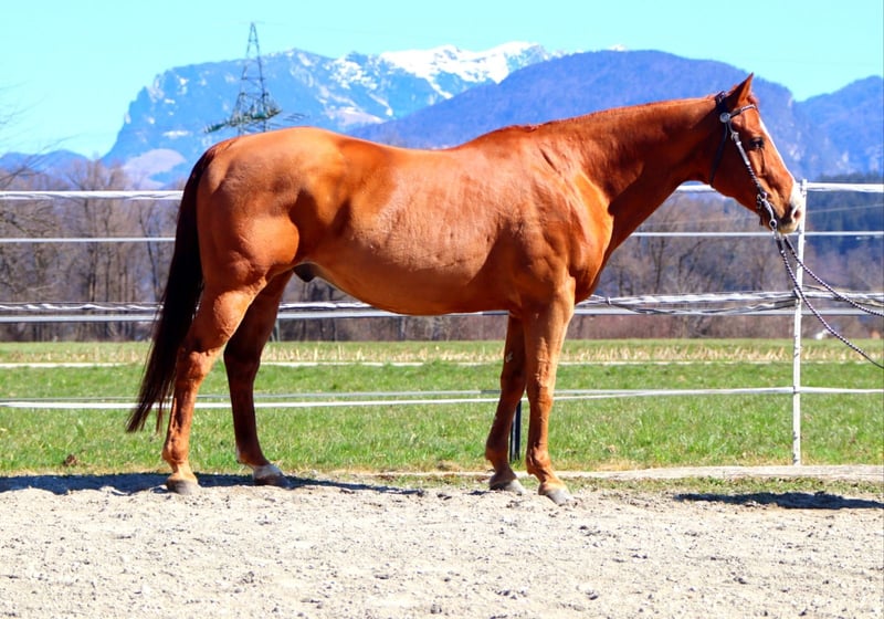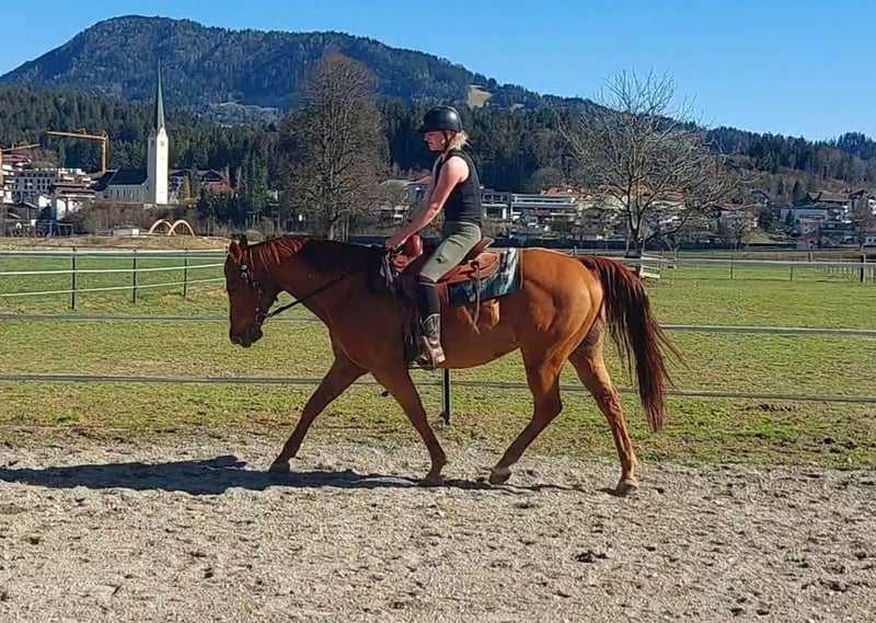Superhübscher "Goldjunge" Rufname "Goldie" Quarter Horse mit AQHA Papier Vater: EL PEPPY BILL CUTTER MV: EL BEES TARDY Wallach 16 Jahre Ca 1.51m groß Geritten Tirol Transport günstig möglich