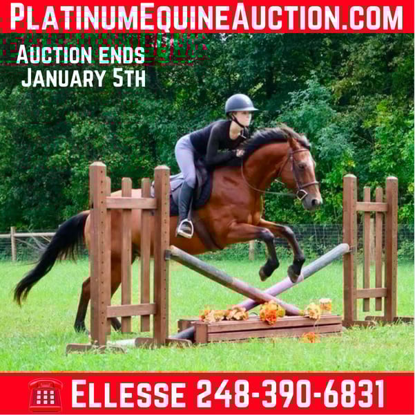 ONLINE AUCTION Place your bids at www.PlatinumEquineAuction.com Starting Bid $3500 Auction ends January 5th, 2024 Need a new saddle? Check out White Rock Saddles on our website or Facebook! Here’s a horse that has seen and done it all! Sherman is a grade quarter horse gelding who is 14 years old, and approximately 15hh. He’s a handsome bay with black legs and a long mane and tail. Sherman is your guy whether you’re looking for a trustworthy trail partner, a backyard family fun horse, a school master, or a 4h/equestrian team show horse! Sherman can walk, trot, and canters with ease, he has wonderful breaks, moves on and off of leg pressure, direct reins, and neck reins. Sherman has taught countless of beginner riders! He can take a joke and doesn’t mind an unbalanced floppy rider or a timid rider. He will do his job and keep his rider safe every time! Sherman is not the spooky type! He is not phased by new places, wildlife, or obstacles you may encounter out on the trails or show arena. Sherman has been shopping at rural king! You heard that right! Sherman went inside of a store to go shopping! He has also been shown for years in 4h and open horse shows. He has years of experience and is happy to teach a new rider the ropes or just be that confidence builder for a timid or rusty rider. The only reason Sherman is for sale is because his owner is now off to college and wants him to find a new rider to teach and love! He is UTD on everything! Located in Howell, MI. Contact Ellesse Schwartz 248-390-6831 with any questions. ONLINE AUCTION Place your bids at www.PlatinumEquineAuction.com Starting Bid $3500 Auction ends January 5th, 2024 Need a new saddle? Check out White Rock Saddles on our website or Facebook!