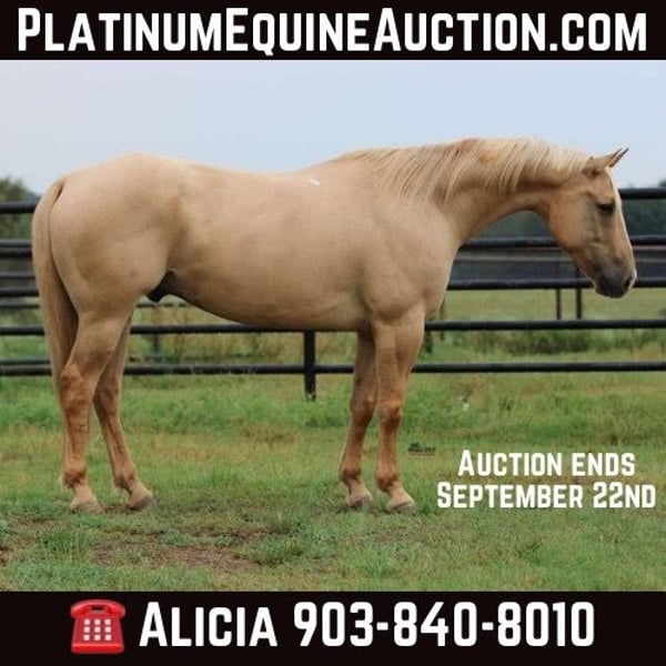 ONLINE AUCTION Place your bids at www.PlatinumEquineAuction.com Starting Bid $3500 Auction ends September 22nd, 2024 Need a new saddle? Check out White Rock Saddles on our website or Facebook! If you’re seeking a ranch horse that exudes both style and substance, Carlos is the perfect choice. This 14-year-old dunalino stands 15 hands tall and boasts a flashy appearance that is sure to turn heads. But Carlos is more than just a pretty face – He carries the El Sombrero Ranch brand from Old Mexico where he was born and trained which gave him extensive experience in ranch work, including roping, gathering, loading, and working with calves before making his journey to the United States where he’s continued in his ranch duties and many trail miles. Carlos has an amazingly smooth jog and short lope that you can ride for hours. He is easy to handle and care for. He has shoes on all four feet. He gets along in a mixed herd and his quiet temperament makes him a welcome addition to any ranch. Whether you need a reliable mount for challenging terrain or a versatile horse that can handle any task, Carlos is the ultimate choice. Please do not hesitate to call or text Alicia Darling 903-840-8010 with any questions. Located in Willis Point, TX. ONLINE AUCTION Place your bids at www.PlatinumEquineAuction.com Starting Bid $3500 Auction ends September 22nd, 2024 Need a new saddle? Check out White Rock Saddles on our website or Facebook!